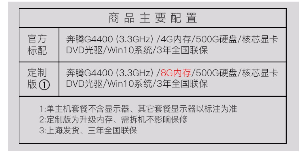 商品名称:联想/lenovo 扬天台式机电脑 奔腾G4400台式电脑办公商用 M4601C