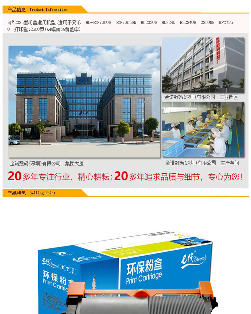 商品名称:e代经典-TN-2225-兼容粉盒经典-适用机型 兄弟DCP-7060D;DCP-7065DN;HL-2240;HL-2240D;联想LJ2400;LJ2600D;M7400打印页数:2600页-黑色