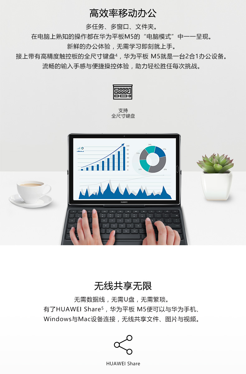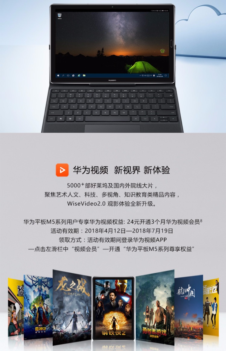 商品名称:Huawei/华为 平板电脑10.8英寸 高清显示安卓WiFi/4G可通话二合一智能游戏电脑