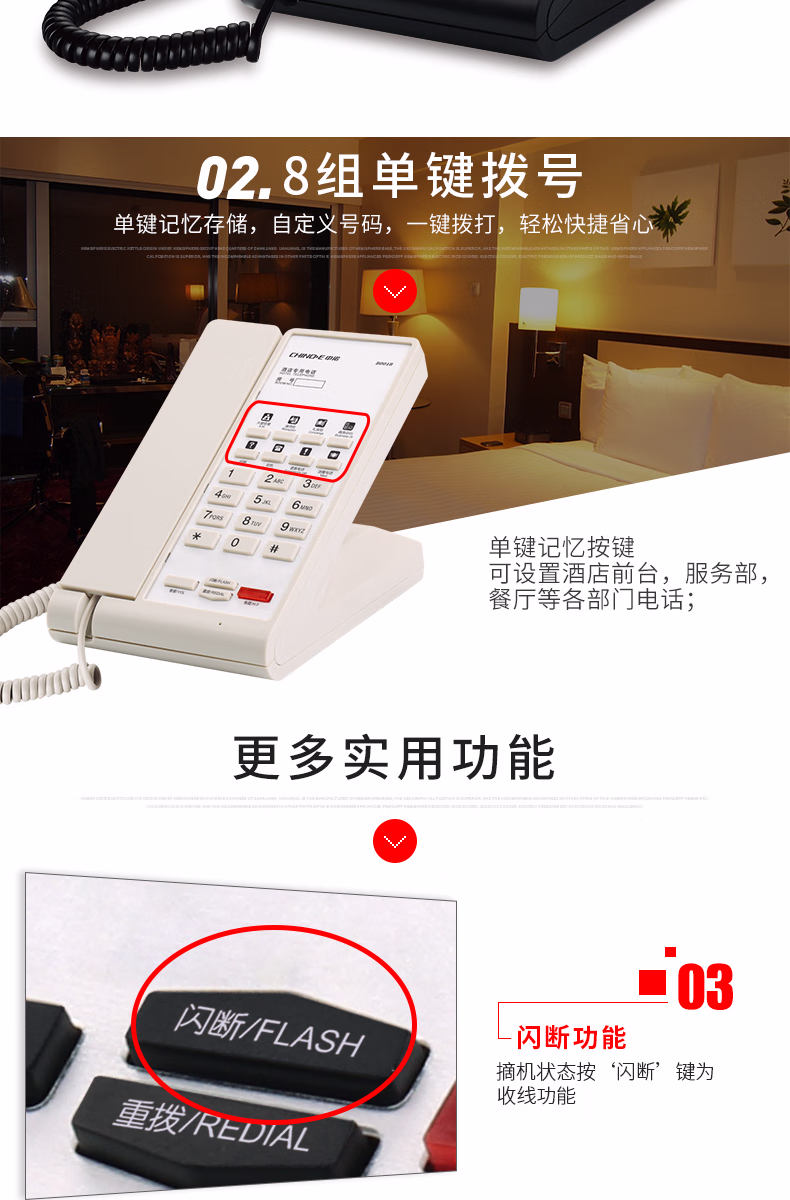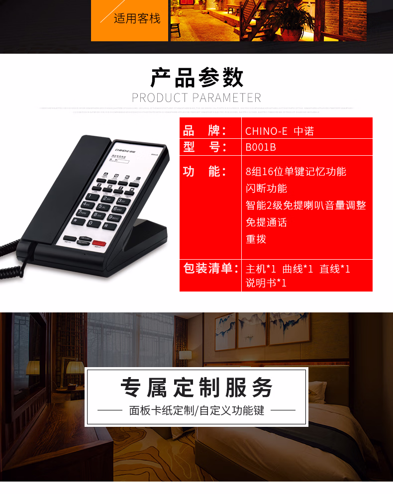 商品名称:中诺(CHINO-E) 中诺酒店商务办公电话机高档客房电话机家用座机美式电话机logo定制B001B 米白色 单位:台