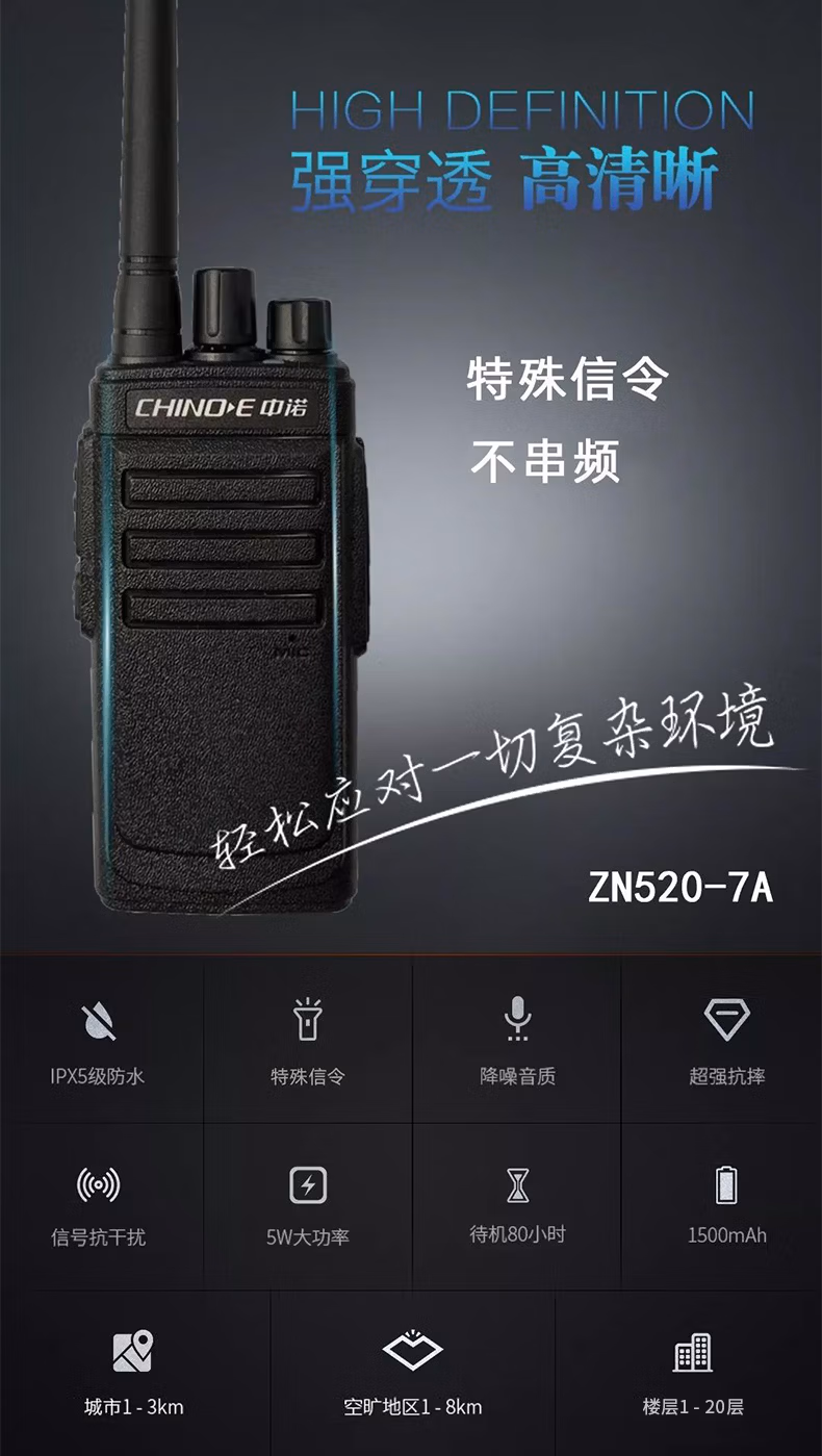 商品名称:中诺(CHINO-E) 7A无线手台对讲机酒店餐厅户外工程对讲小型对讲器便携长待机 单位:台