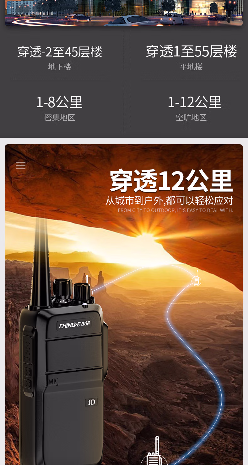 商品名称:中诺(CHINO-E) 1D大功率对讲机 户外工地对讲器旅游车队对讲讲机 单位:台