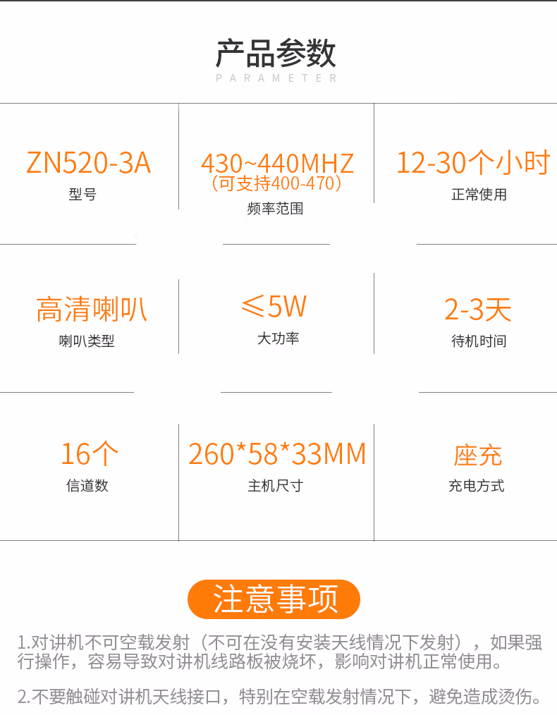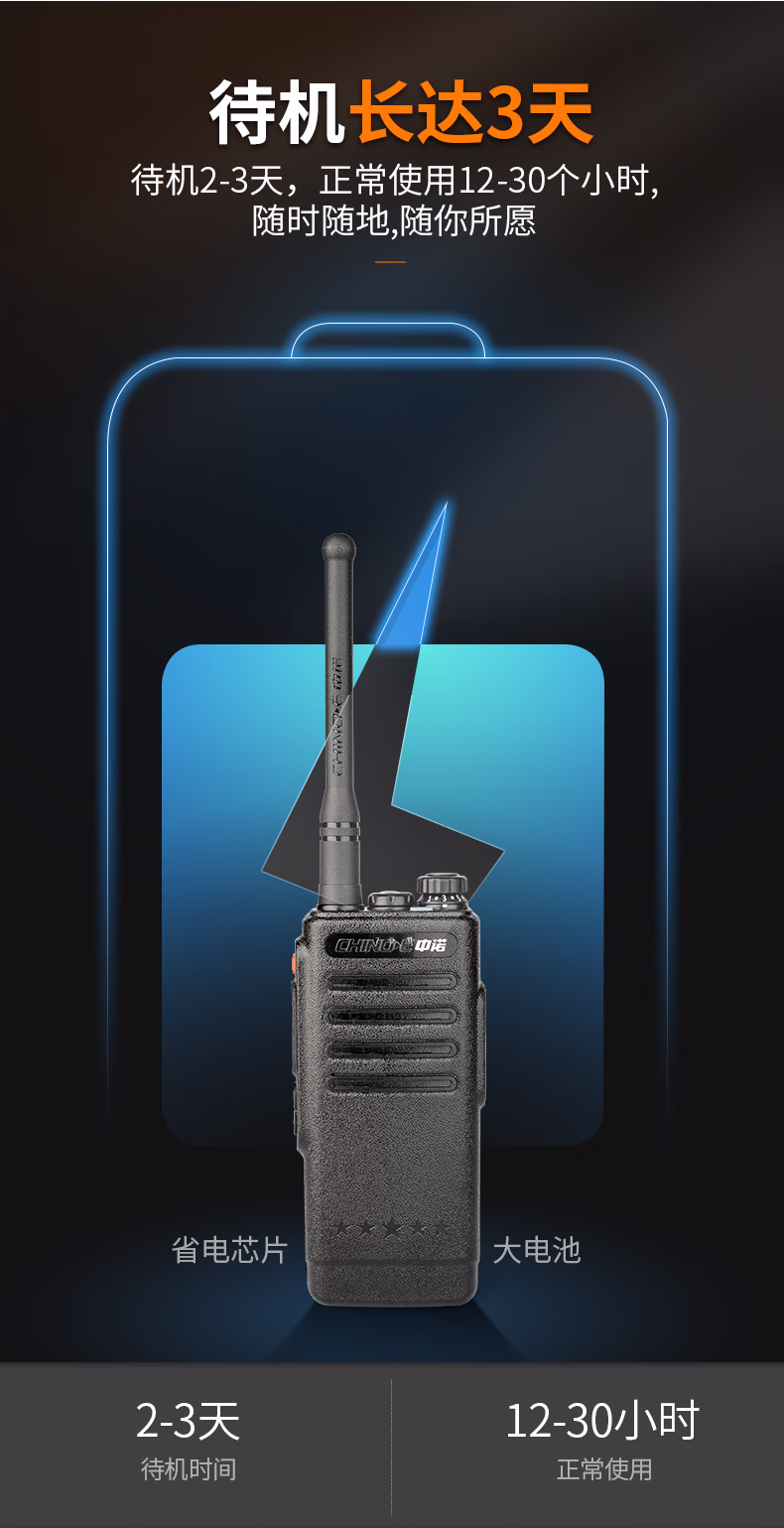 商品名称:中诺(CHINO-E) 3A大功率对讲机酒店餐厅工地户外10公里物业安防对讲器 单位:台