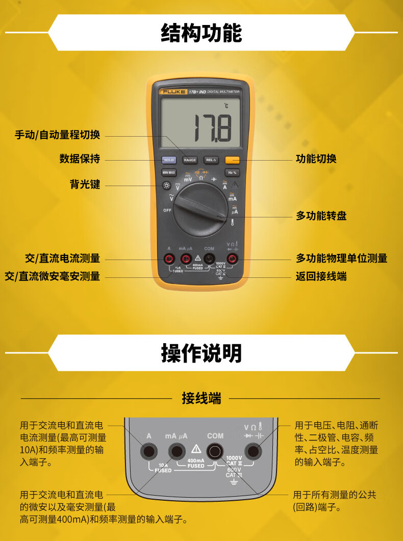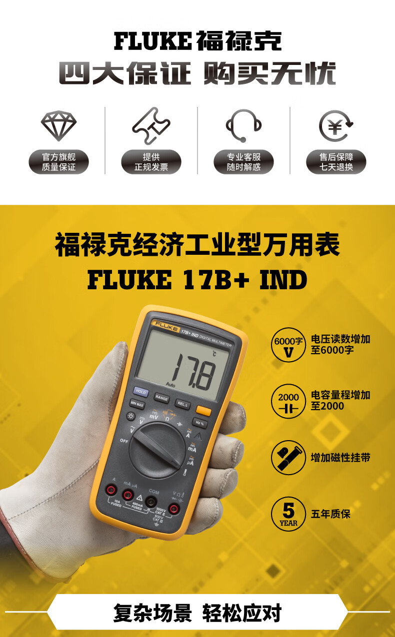 商品名称:福禄克(FLUKE)Fluke 17B+IND 数字万用表 1000 V 5年保修 FLUKE-17B+IND 单位:台
