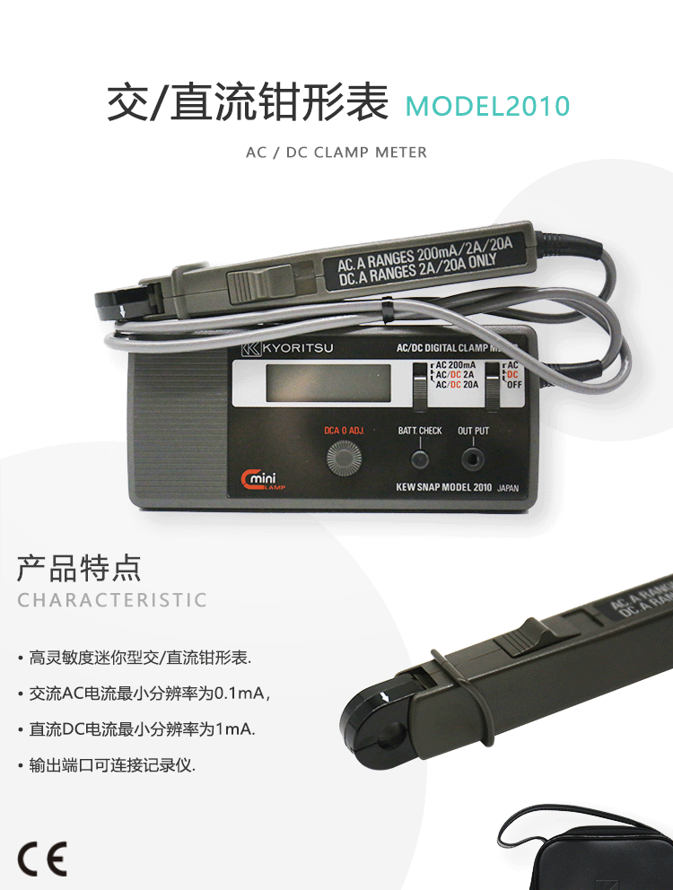 商品名称:克列茨日本共立(KYORITSU)2010 数字交直流钳形表 毫安表 2010(毫安级别高精度电流钳表)单位:台