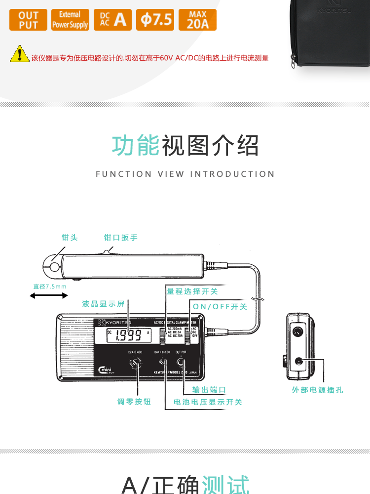 克列茨日本共立(KYORITSU)2010 数字交直流钳形表 毫安表 2010(毫安级别高精度电流钳表)单位:台
