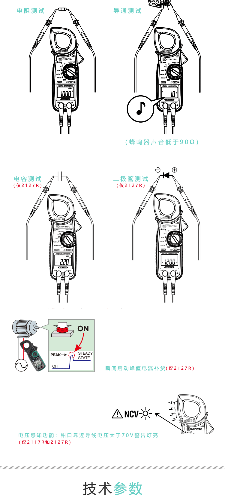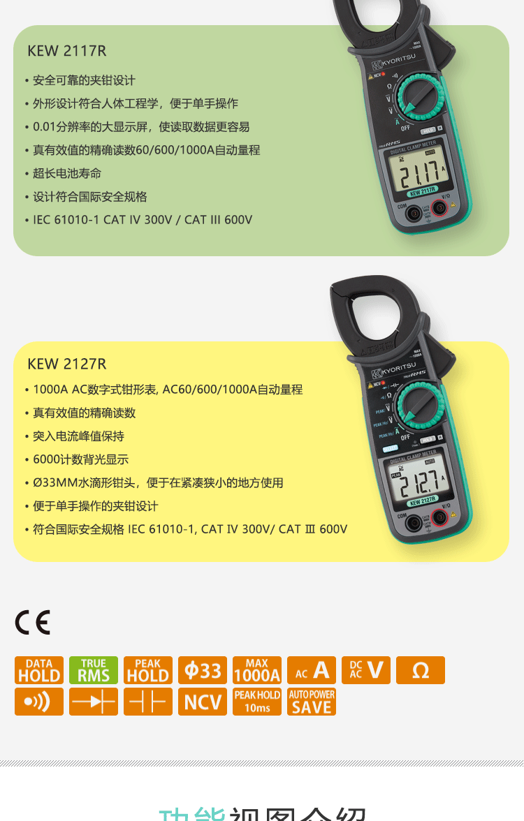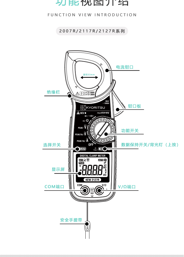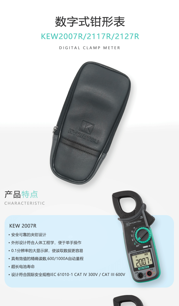 日本共立/克列茨KYORITSU数字式钳形电流表2007R/2117R 2007R(600/1000A分辨率0.1A)单位:台
