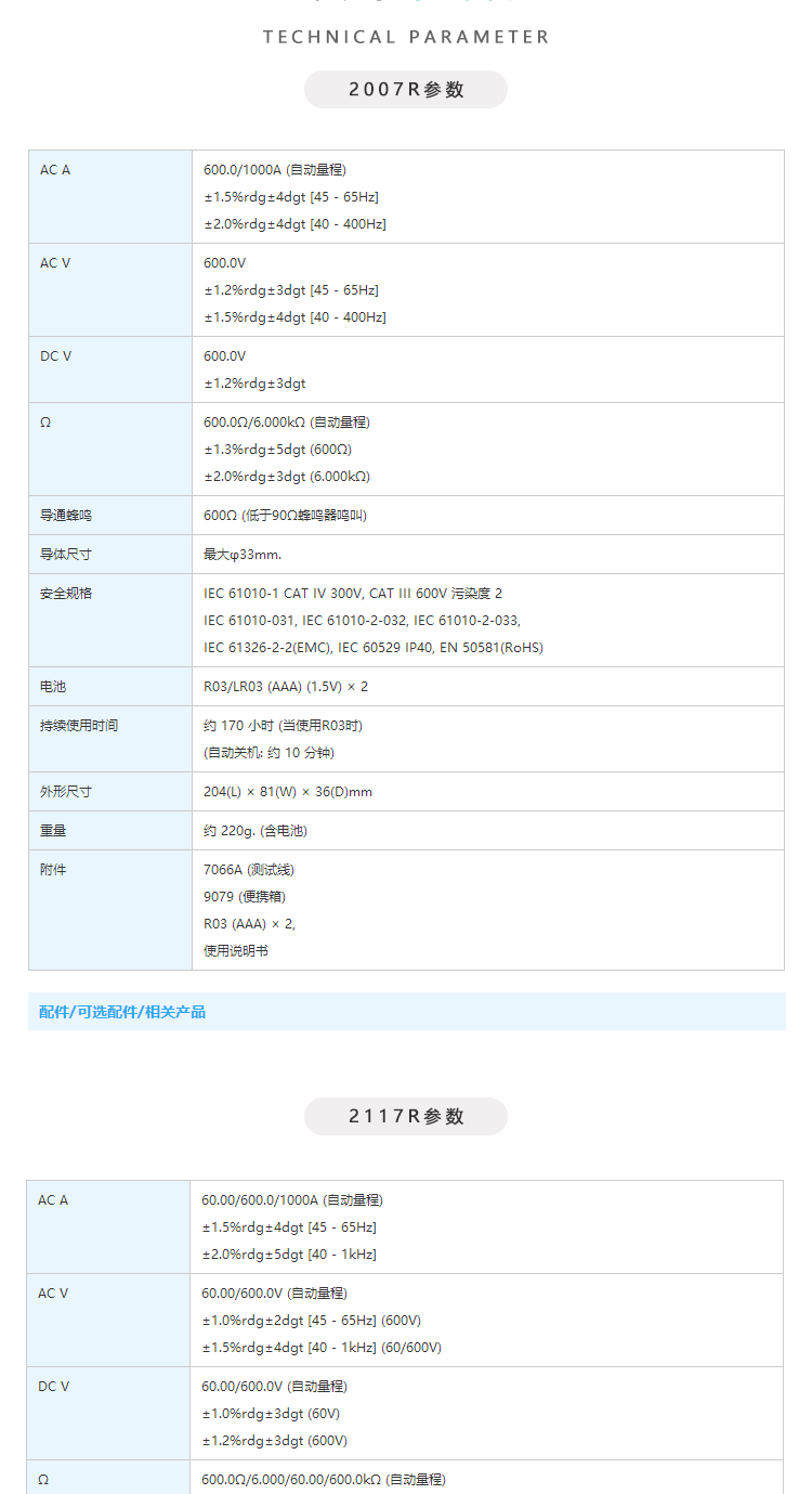 商品名称:日本共立/克列茨KYORITSU数字式钳形电流表2007R/2117R 2007R(600/1000A分辨率0.1A)单位:台