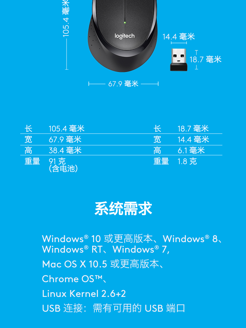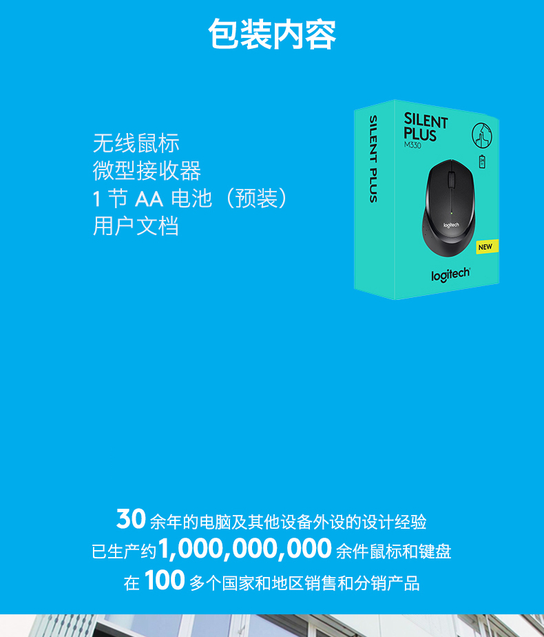 商品名称:罗技/Logitech 静音鼠标无线静音办公鼠标节能静音无声静音鼠标无线鼠标 M330