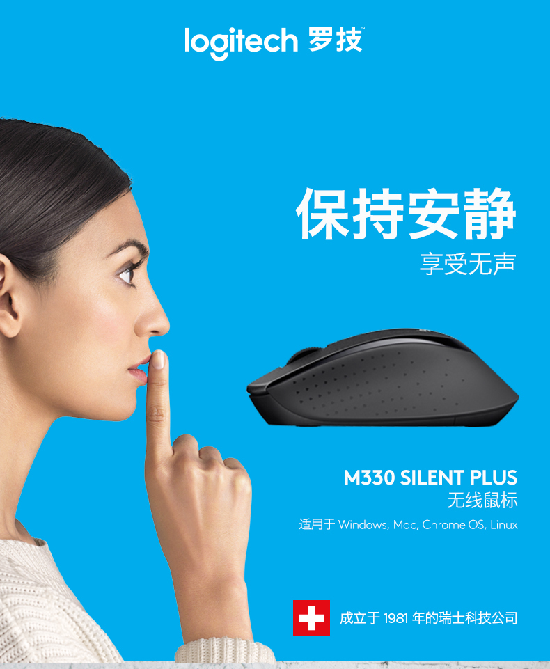 罗技/Logitech 静音鼠标无线静音办公鼠标节能静音无声静音鼠标无线鼠标 M330