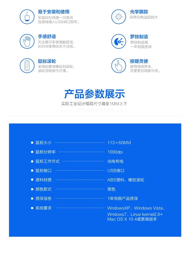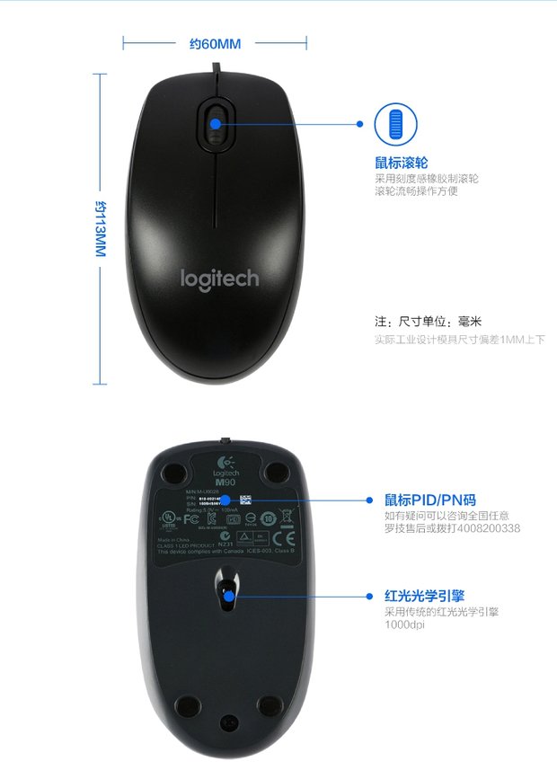 商品名称:罗技/Logitech 有线鼠标笔记本台式电脑光电鼠标办公家用鼠标有线 M90