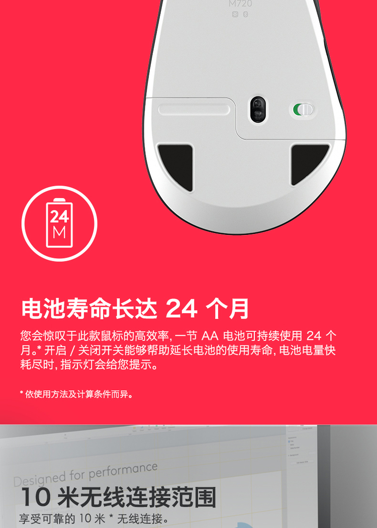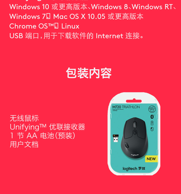 商品名称:罗技/Logitech 蓝牙无线鼠标无限电脑笔记本蓝牙优联双模WIN7/8 MAC M720