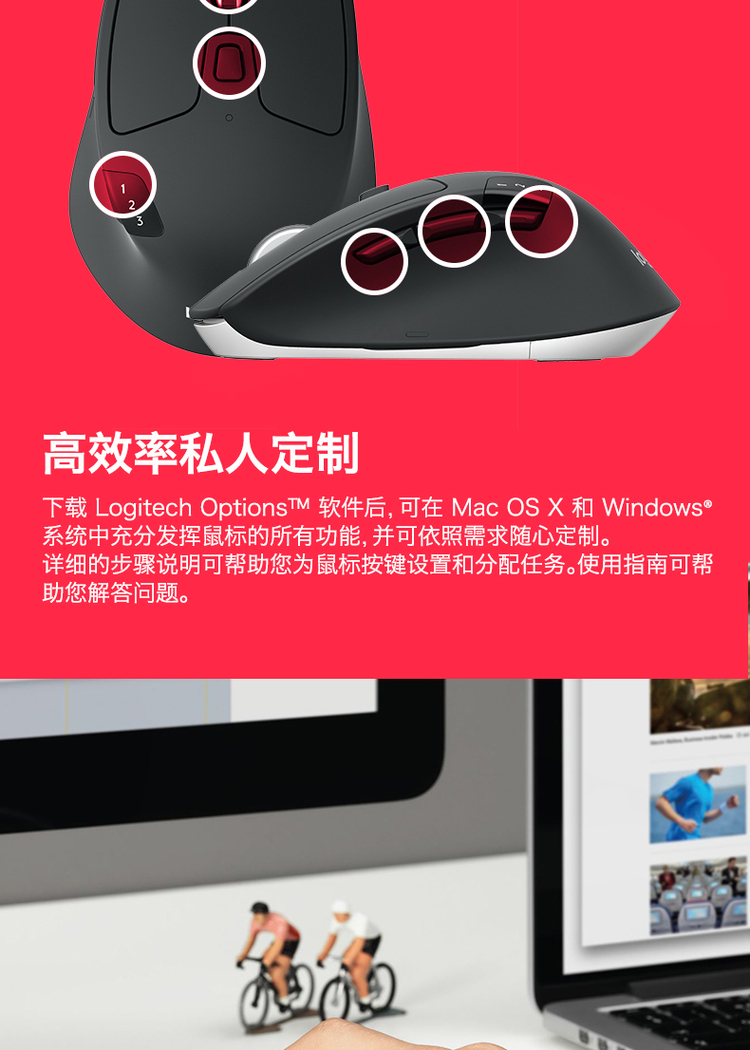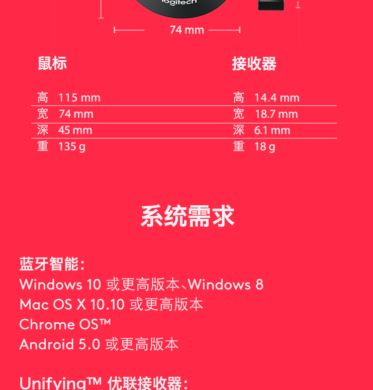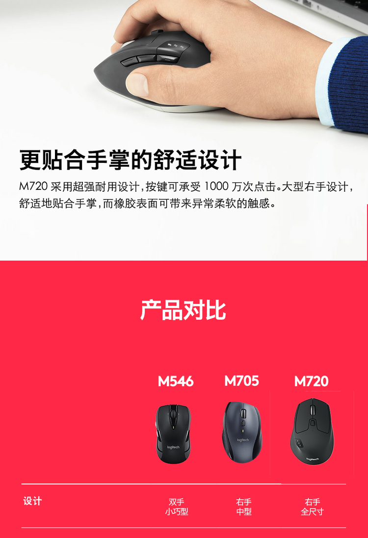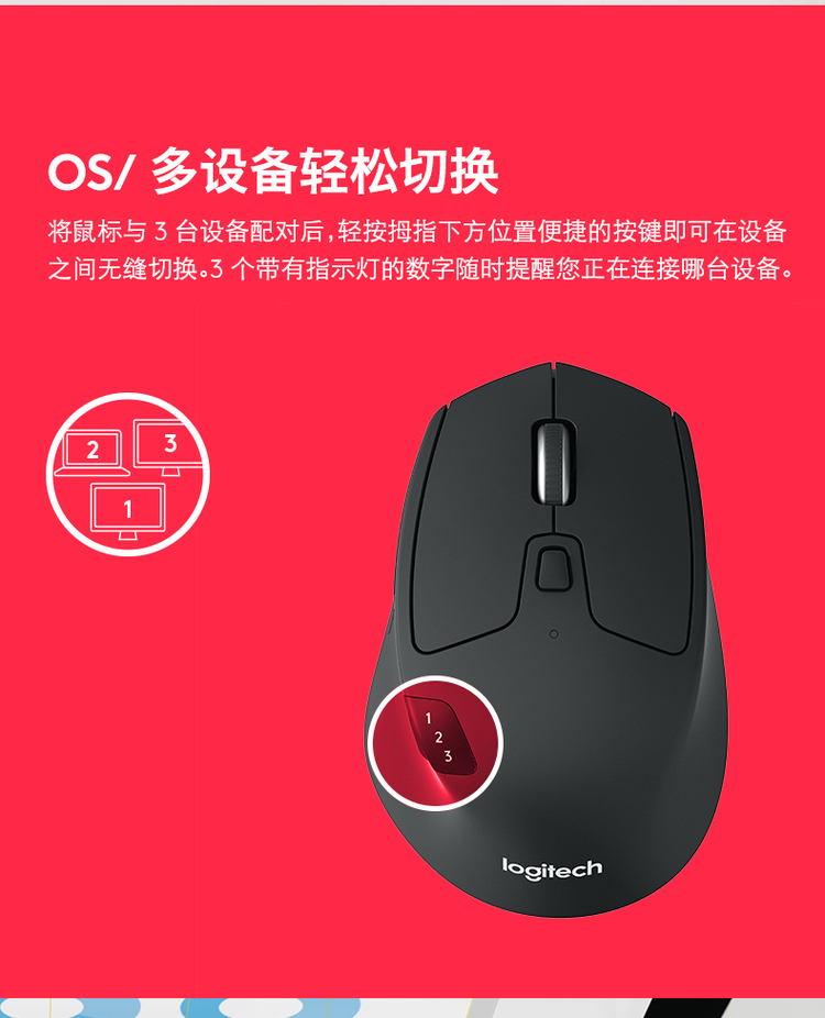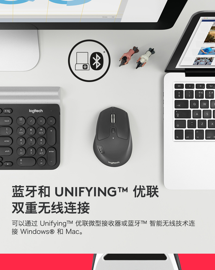 罗技/Logitech 蓝牙无线鼠标无限电脑笔记本蓝牙优联双模WIN7/8 MAC M720