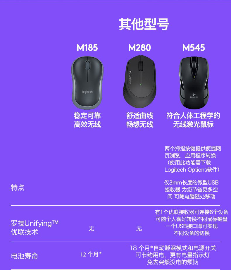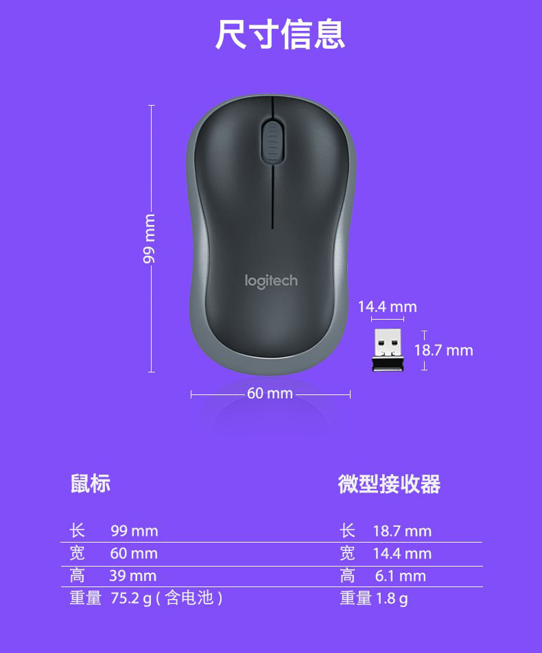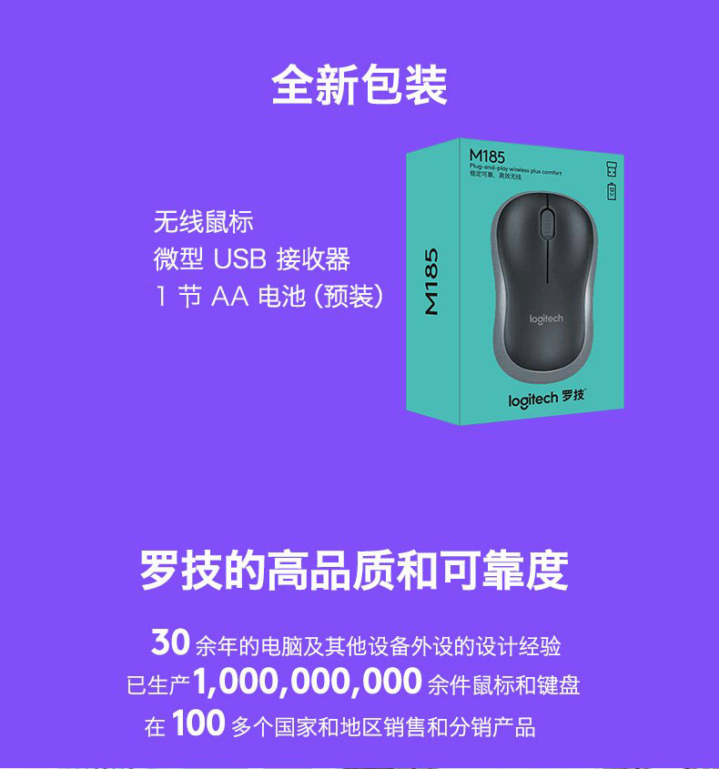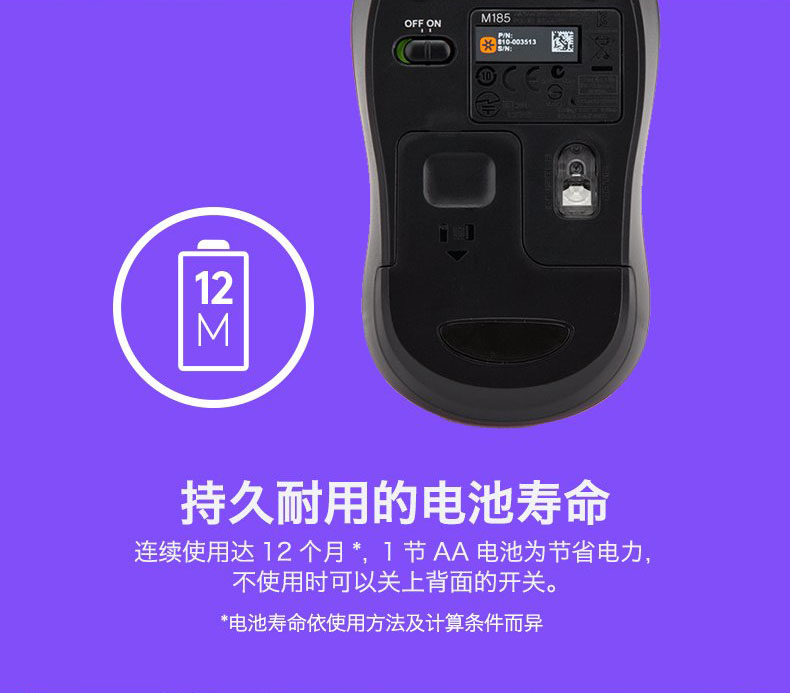 商品名称:罗技/Logitech 笔记本电脑办公光电无线鼠标省电M186 M185
