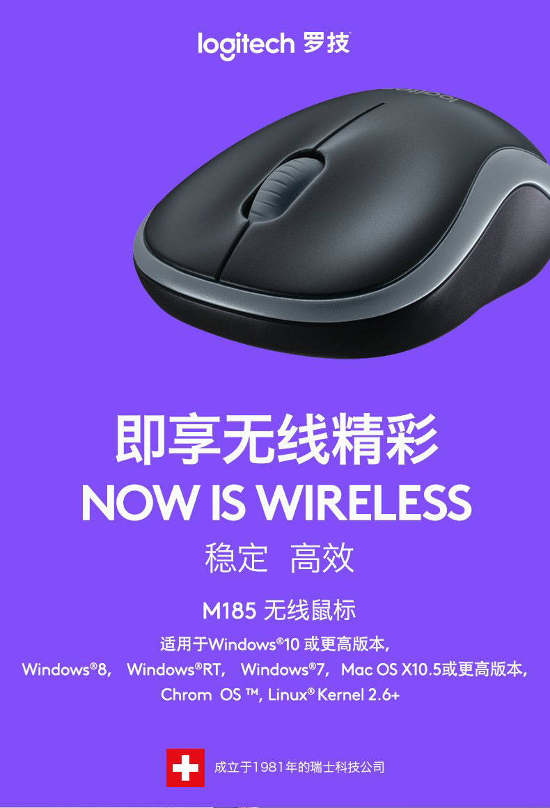 罗技/Logitech 笔记本电脑办公光电无线鼠标省电M186 M185