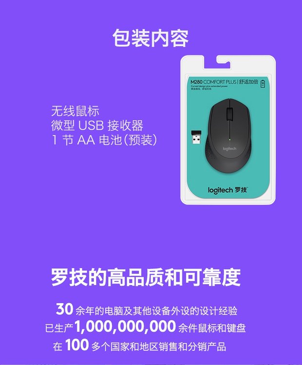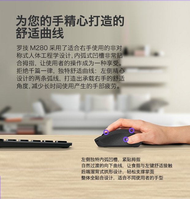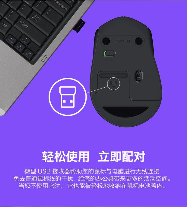 商品名称:罗技 USB无线鼠标笔记本电脑台式女生省电升级M275 M280