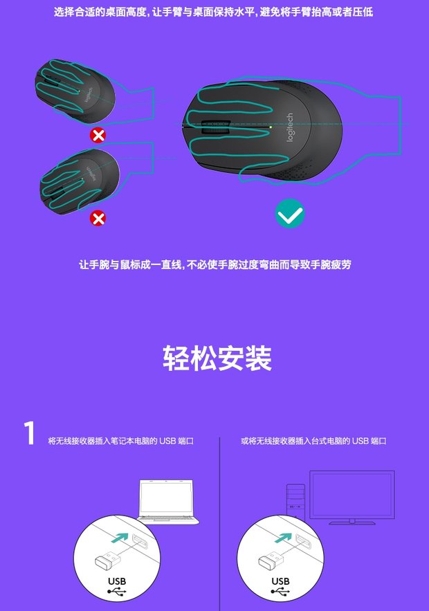 罗技 USB无线鼠标笔记本电脑台式女生省电升级M275 M280