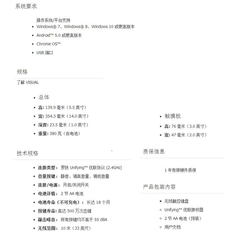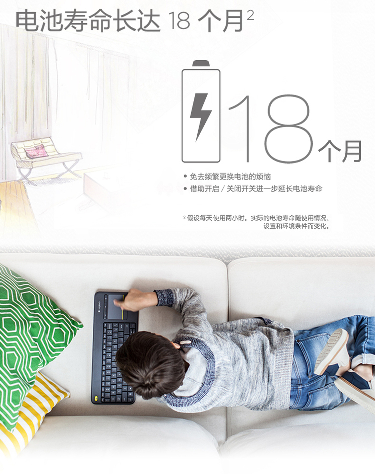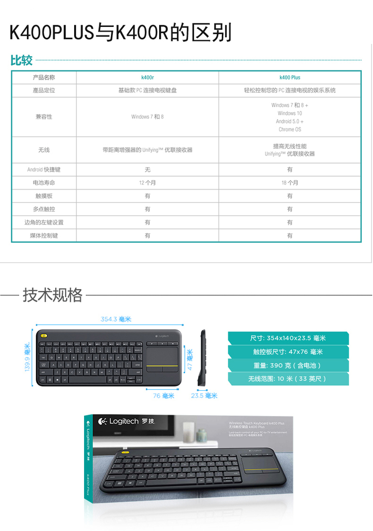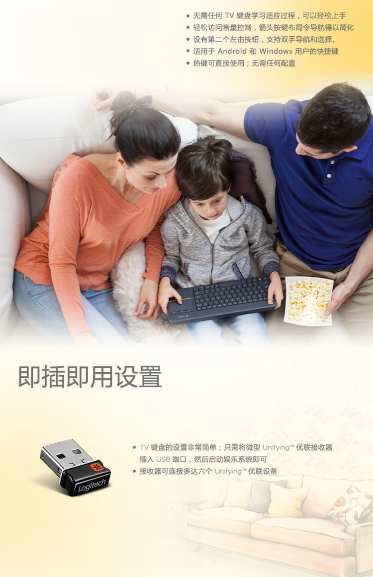 商品名称:罗技/Logitech 安卓智能电视专用电脑触摸面板无线触控键盘 K400 Plus