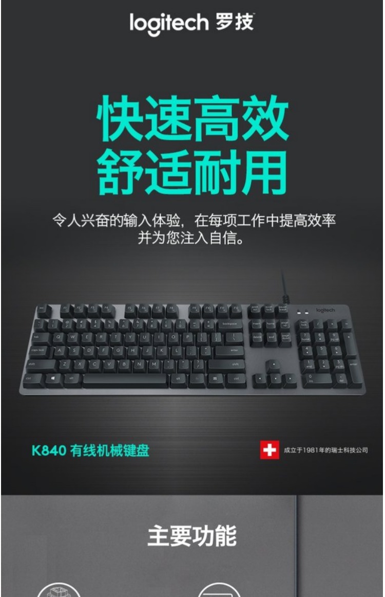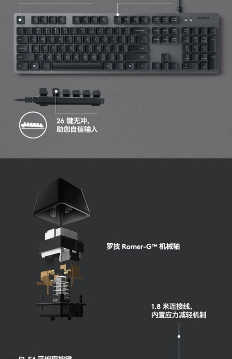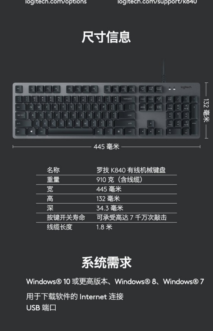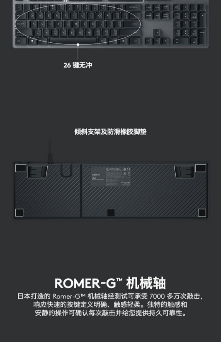 商品名称:罗技/Logitech 机械键盘 有线电竞游戏办公电脑台式 K840