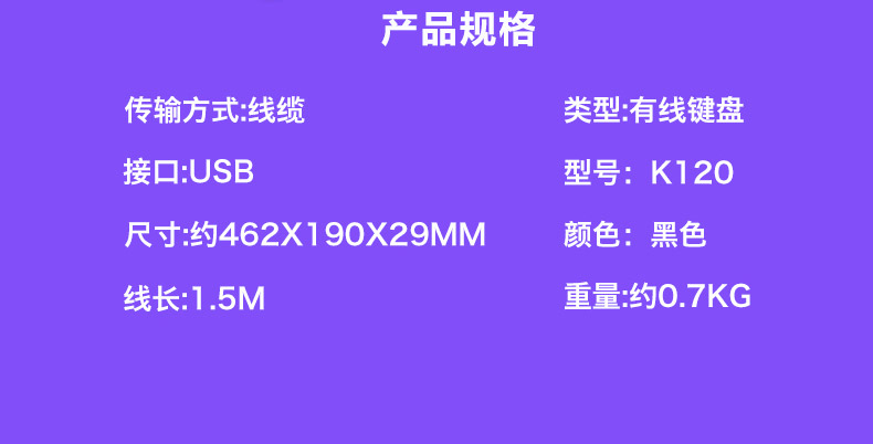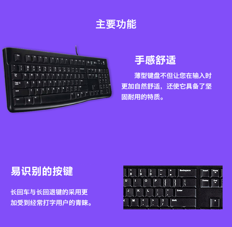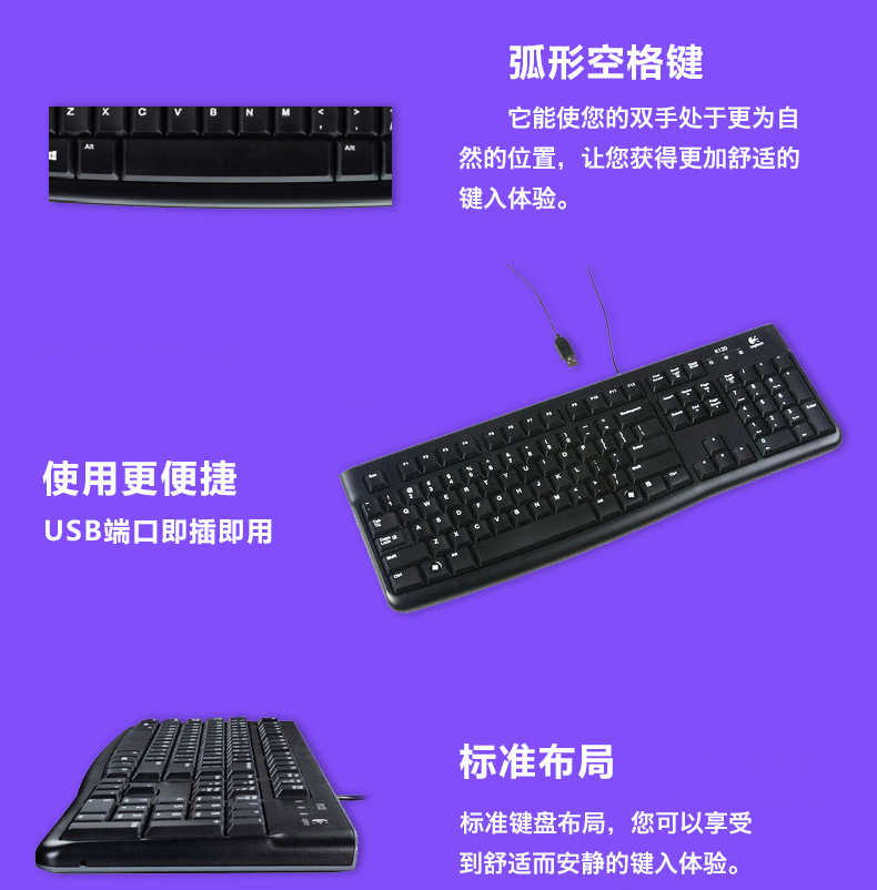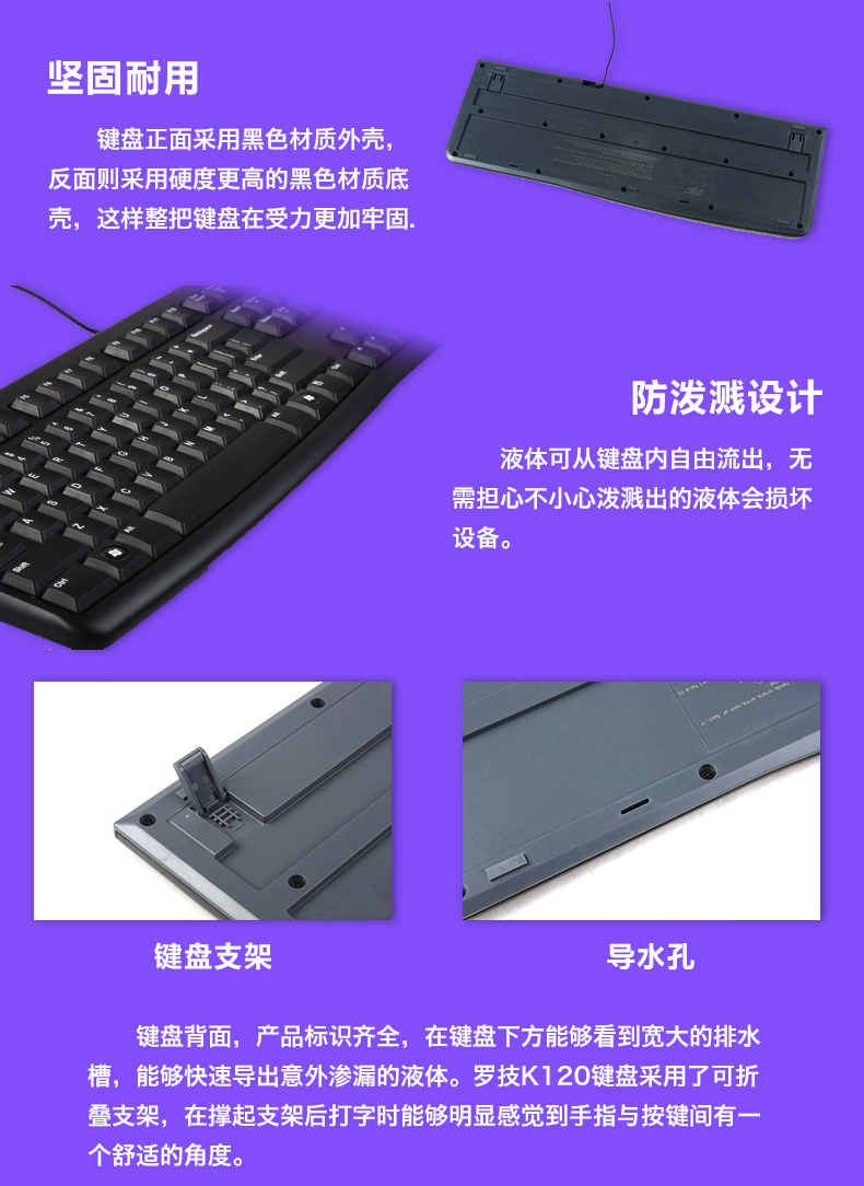 商品名称:罗技/Logitech 有线键盘外接usb笔记本电脑台式机家用静音防水 k120