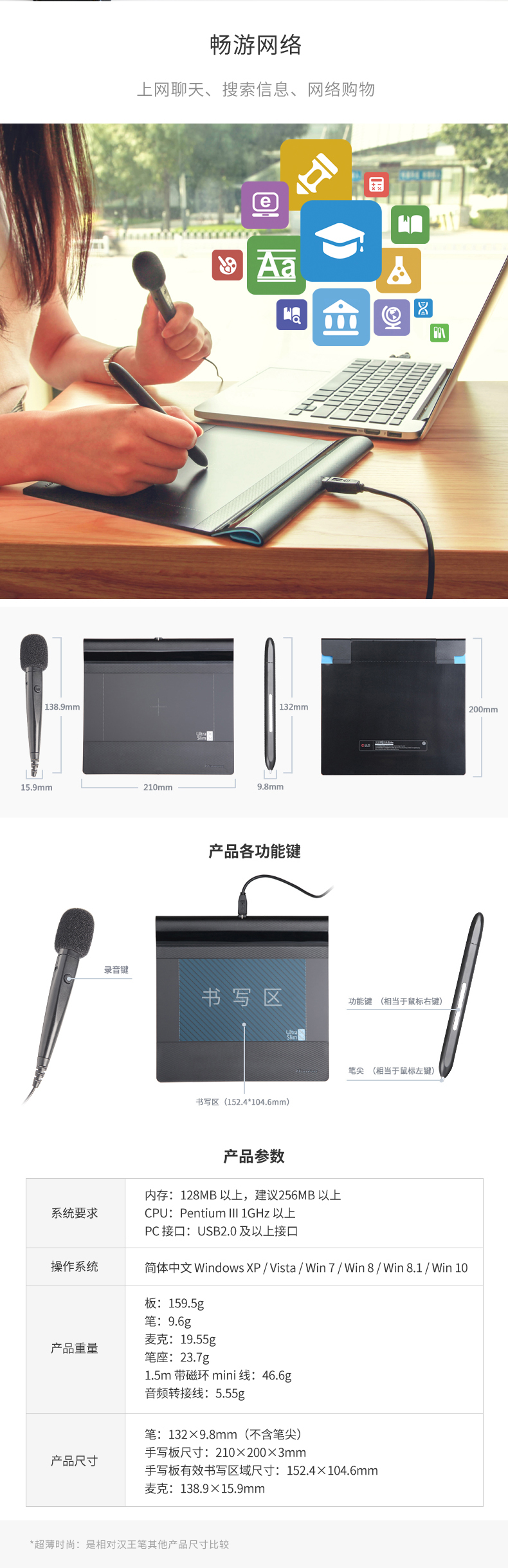 商品名称:汉王 手写板Q先锋+语音版 电脑手写大屏老人写字板 语音录入手写板
