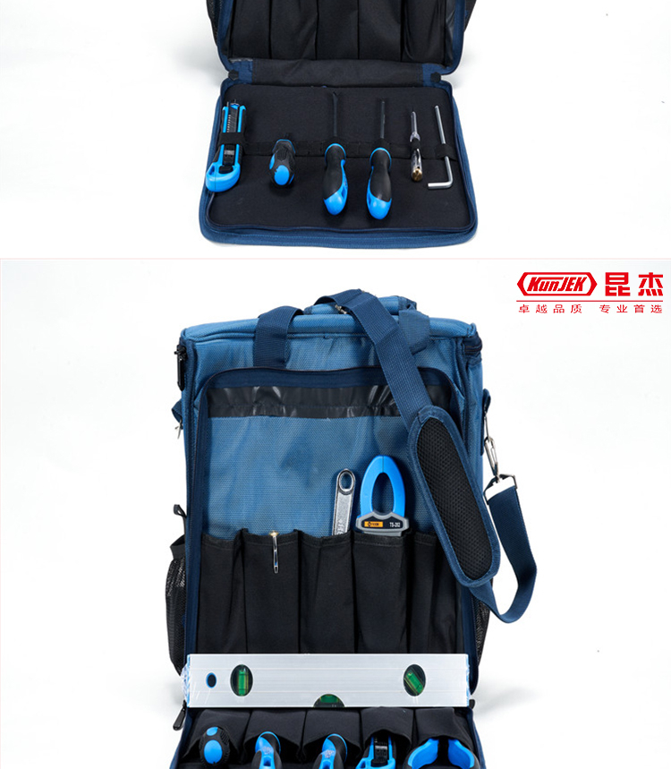 昆杰 KUNJEK 多功能五金维修包便携式板式斜挎工具包 H621-020 单位:个