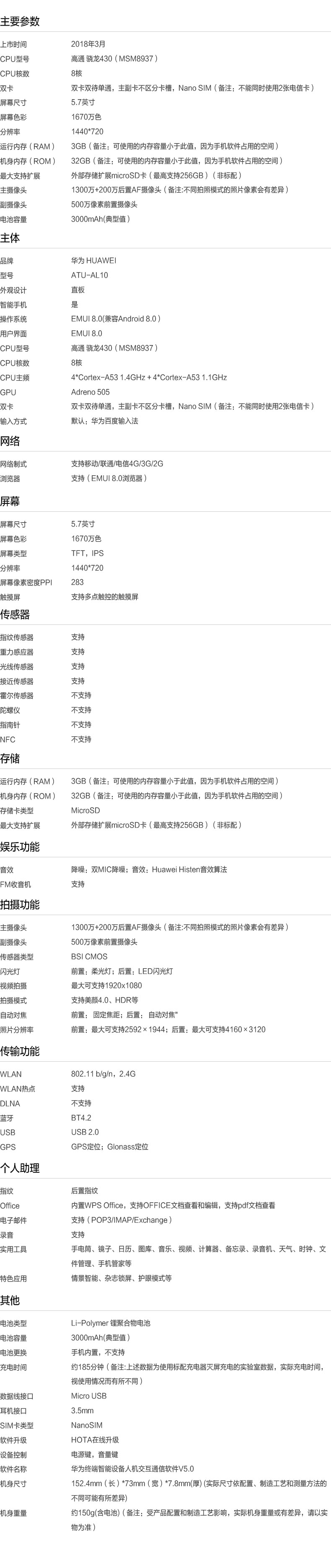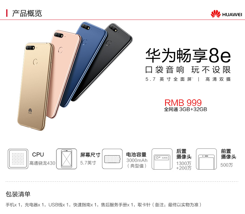 商品名称:华为/Huawei 畅享8e 4G全面屏高清大屏智能学生手机