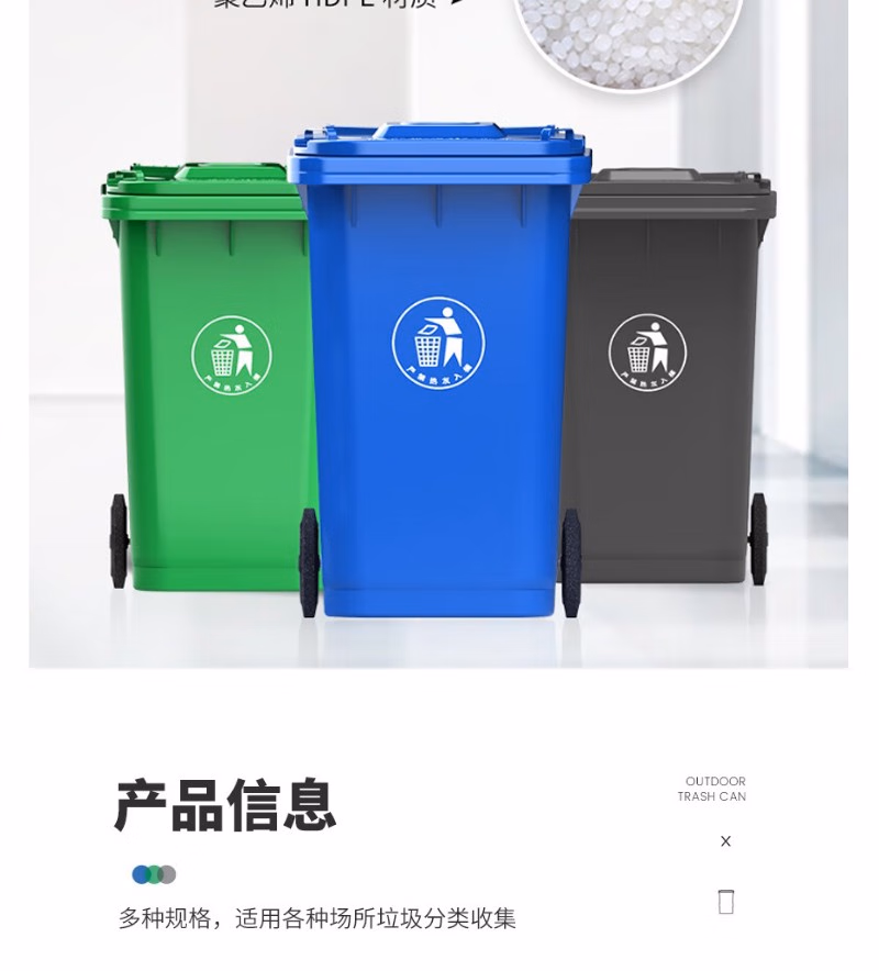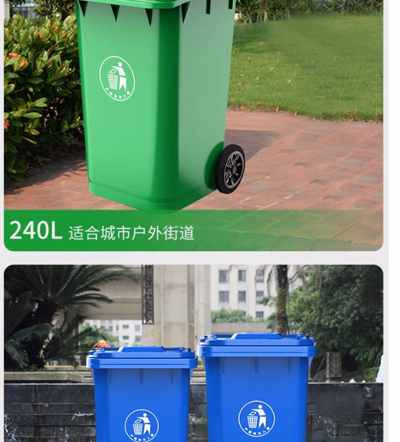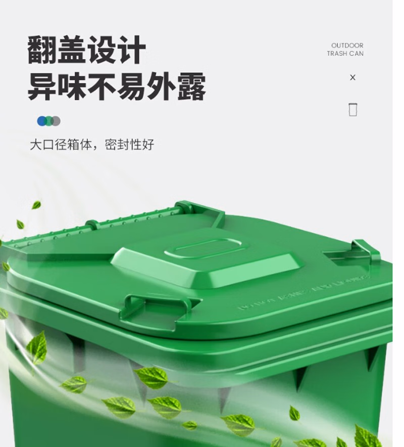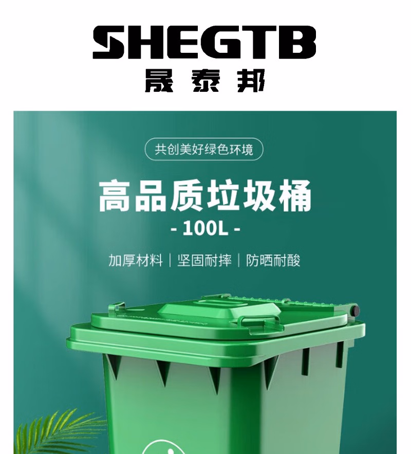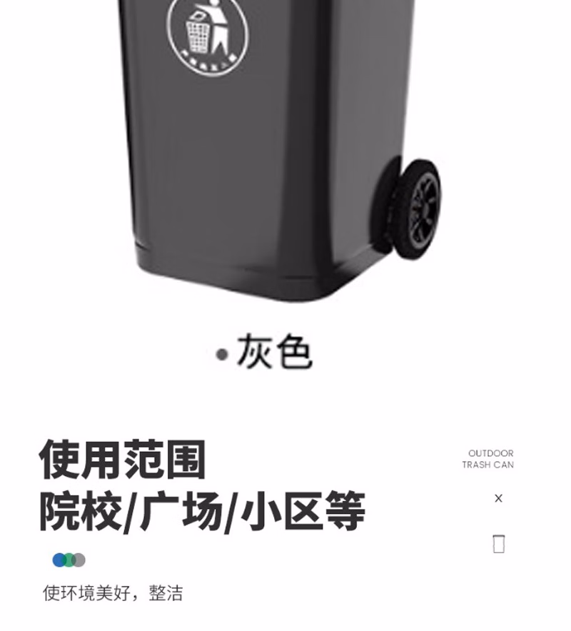 商品名称:晟泰邦 户外垃圾桶 厨房 大号加厚120L商用塑料环卫垃圾桶带盖轮工业小区物业翻盖果皮箱 (灰色) 单位:个