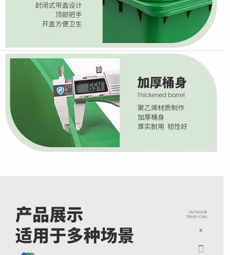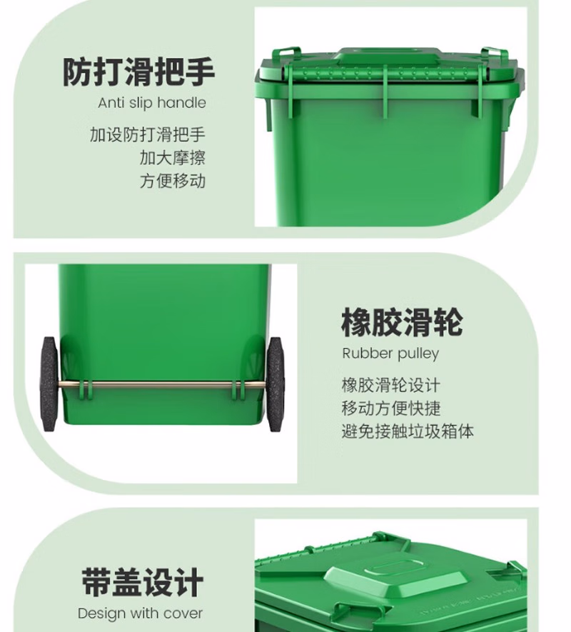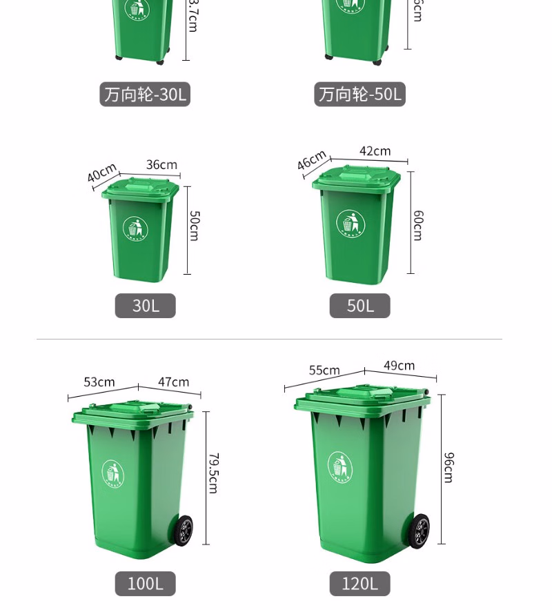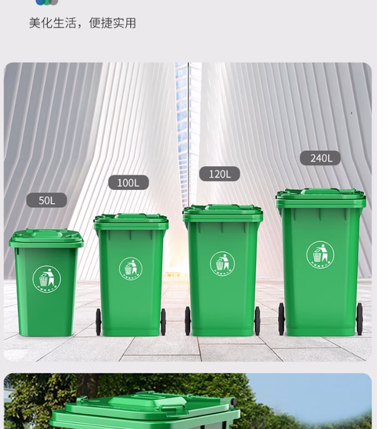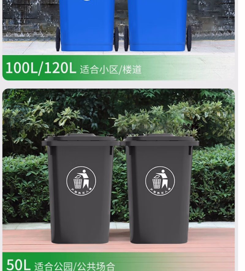 商品名称:晟泰邦 户外垃圾桶 厨房 大号加厚120L商用塑料环卫垃圾桶带盖轮工业小区物业翻盖果皮箱 (灰色) 单位:个
