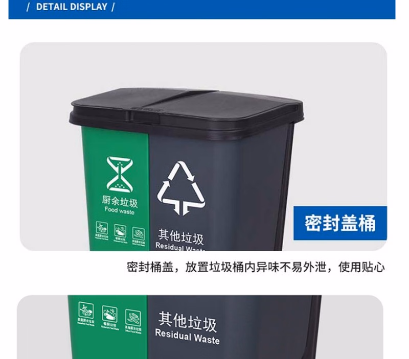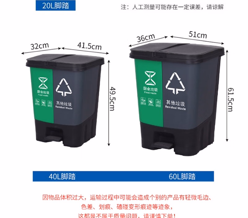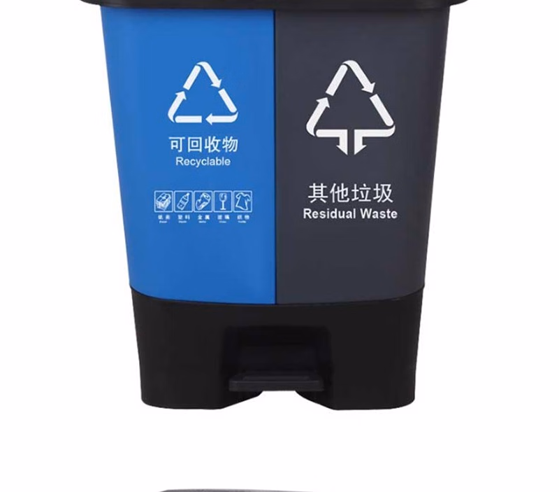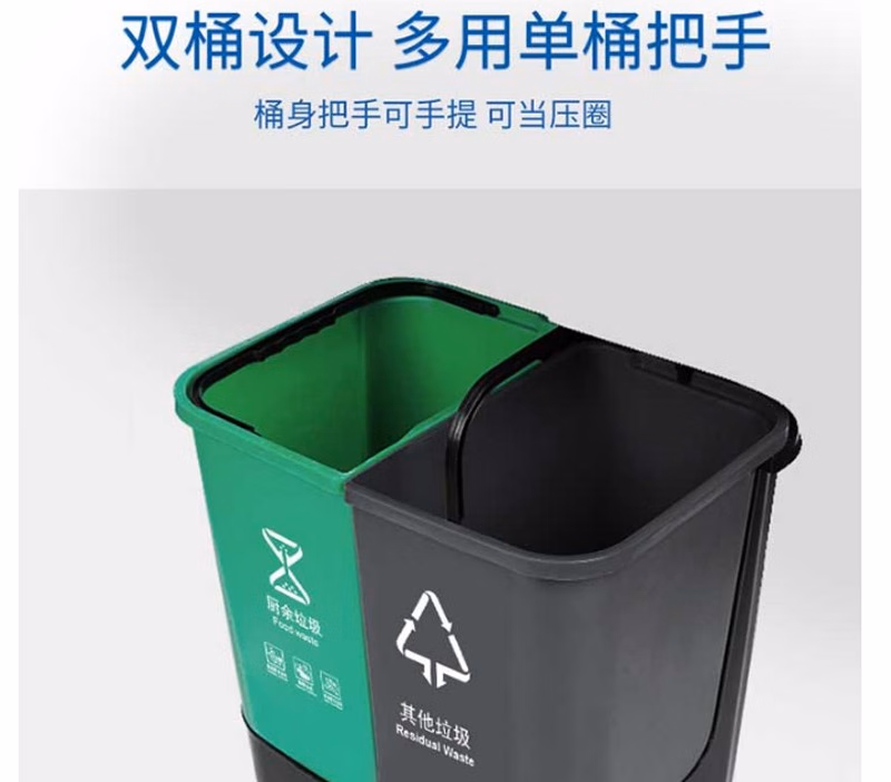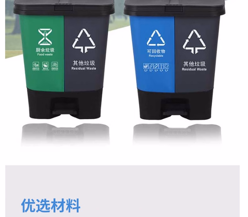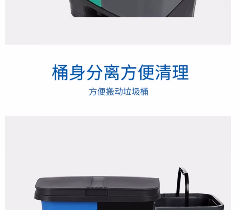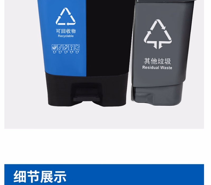 商品名称:晟泰邦 分类垃圾桶 大号脚踏式20L可回收其他垃圾桶带盖双桶户外垃圾桶翻盖 (蓝灰) 单位:个