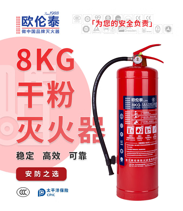 欧伦泰灭火器家用商铺用办公用8KG手提式干粉厂家直发 MFZ/ABC8 单位:具