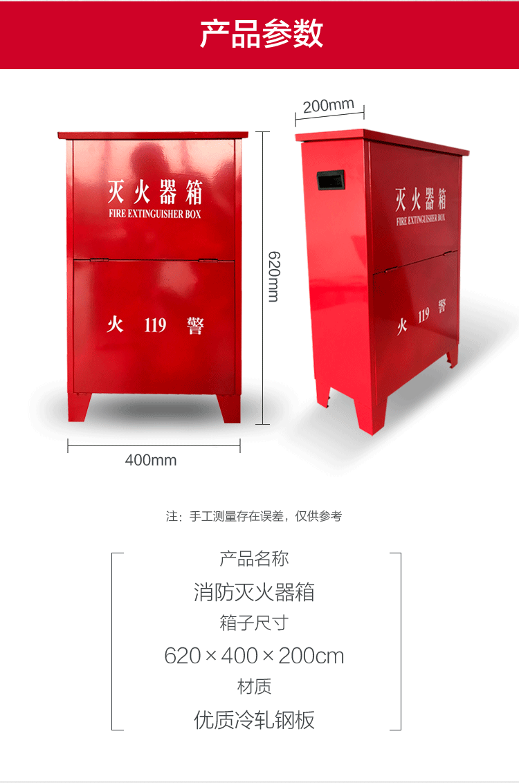 商品名称:欧伦泰 消防灭火器箱 可放置3/4/5公斤干粉灭火器 2/3升水基型灭火器两具 消防器材(空箱) 单位:个