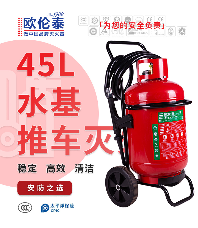 欧伦泰 灭火器 家用商用公司用工厂用仓库大货车用 45L推车式水基型灭火器 消防器材 MPTZ/45 单位:具