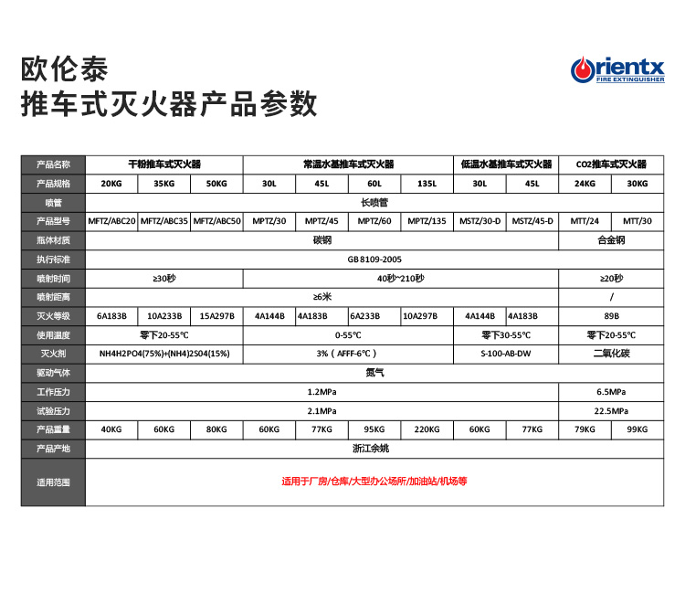 商品名称:欧伦泰 灭火器 家用商用公司用工厂用仓库大货车用 45L推车式水基型灭火器 消防器材 MPTZ/45 单位:具