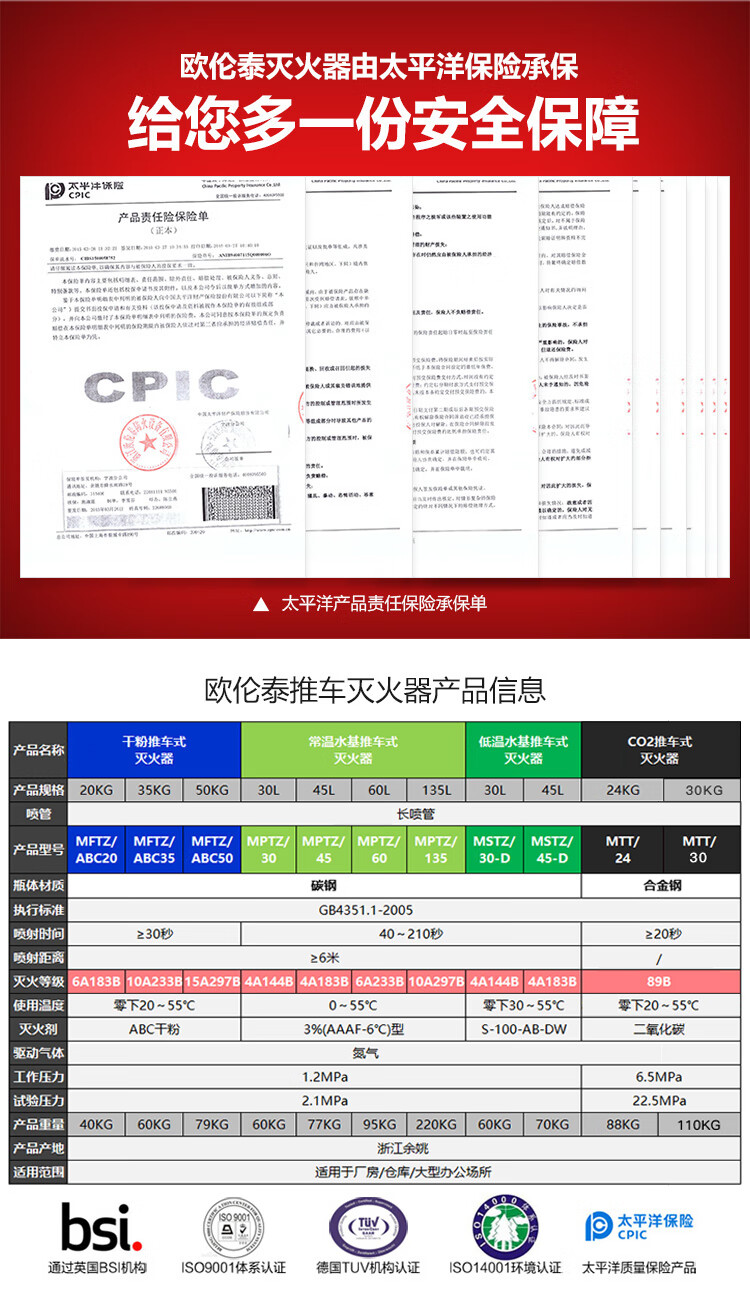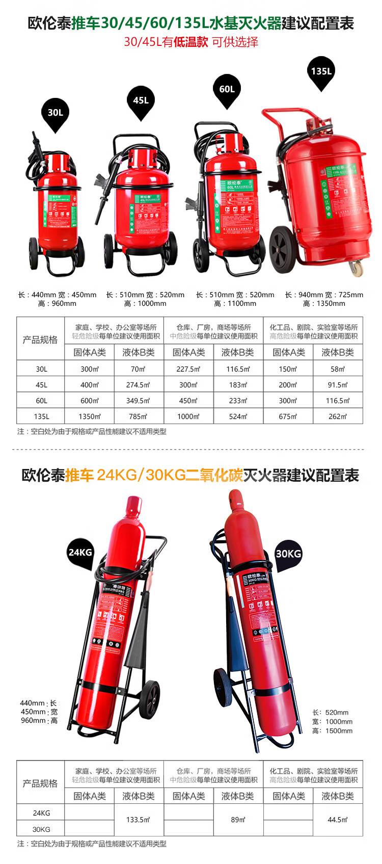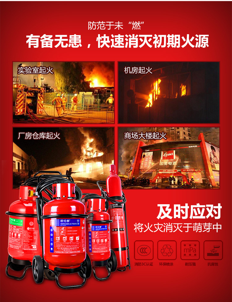 商品名称:欧伦泰 灭火器 定制车载 车用 大货车用 60L推车式水基型灭火器 消防器材 MPTZ/60 单位:具
