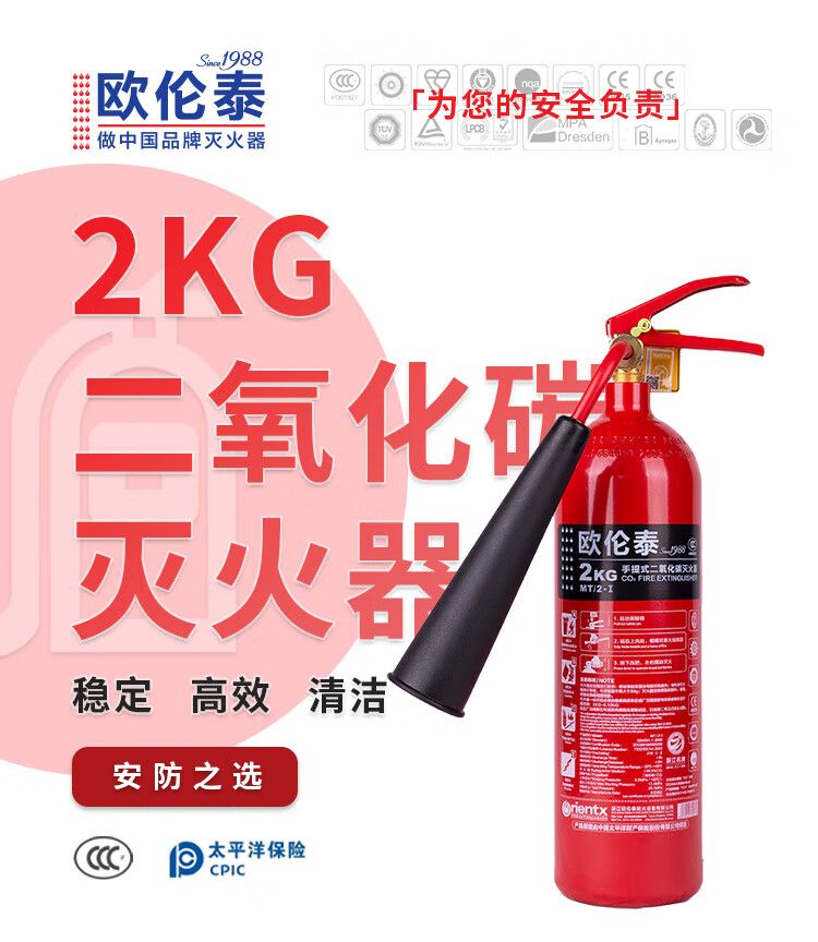 商品名称:欧伦泰 灭火器 车载 车用家用商铺用仓库用 大货车用 档案室用2KG手提式二氧化碳灭火器 消防器材 MT/2-I 单位:具