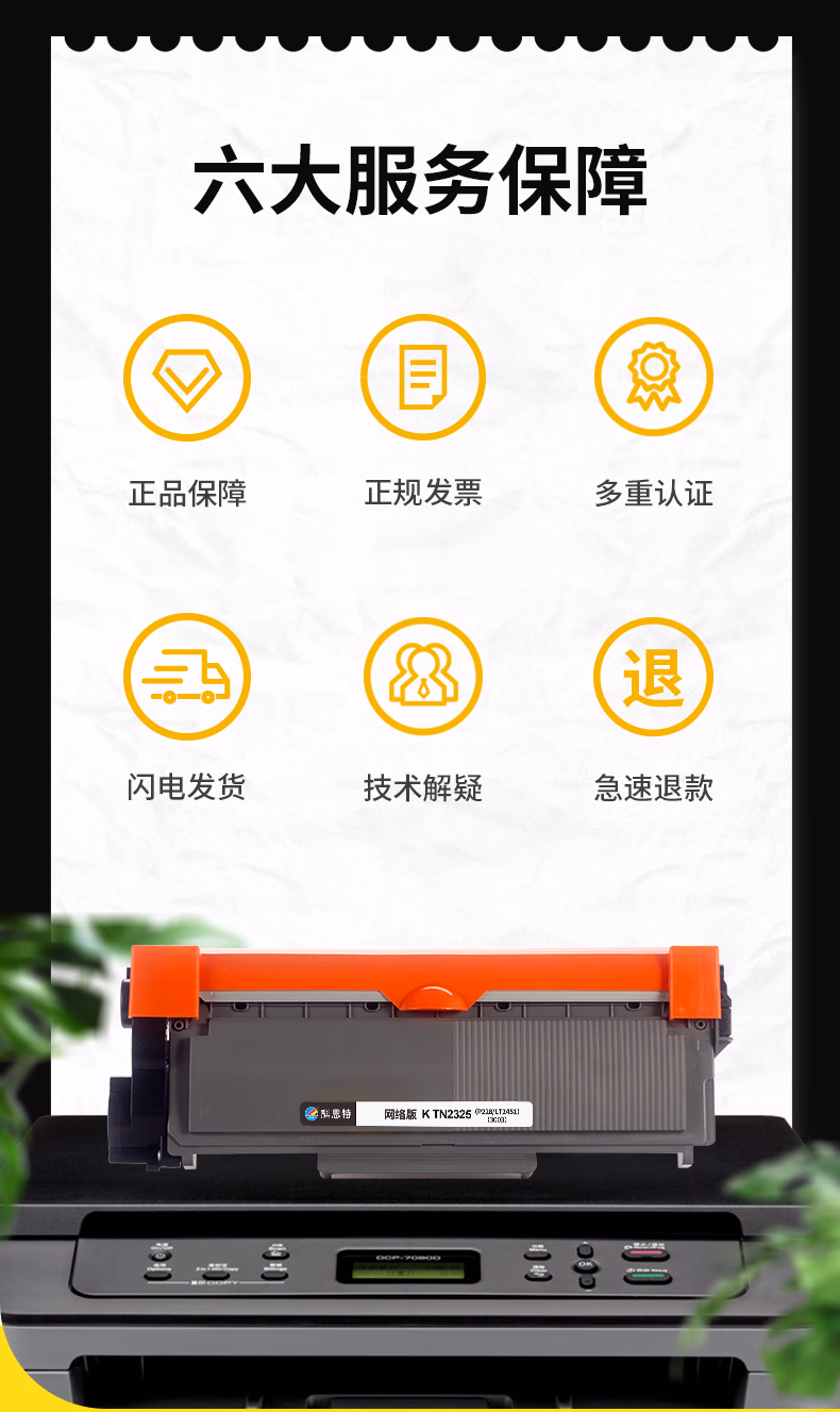 商品名称:科思特-TN2325-粉盒-黑色单支装(适用兄弟HL2260DCP70807180DMFC7380)打印页数:5200