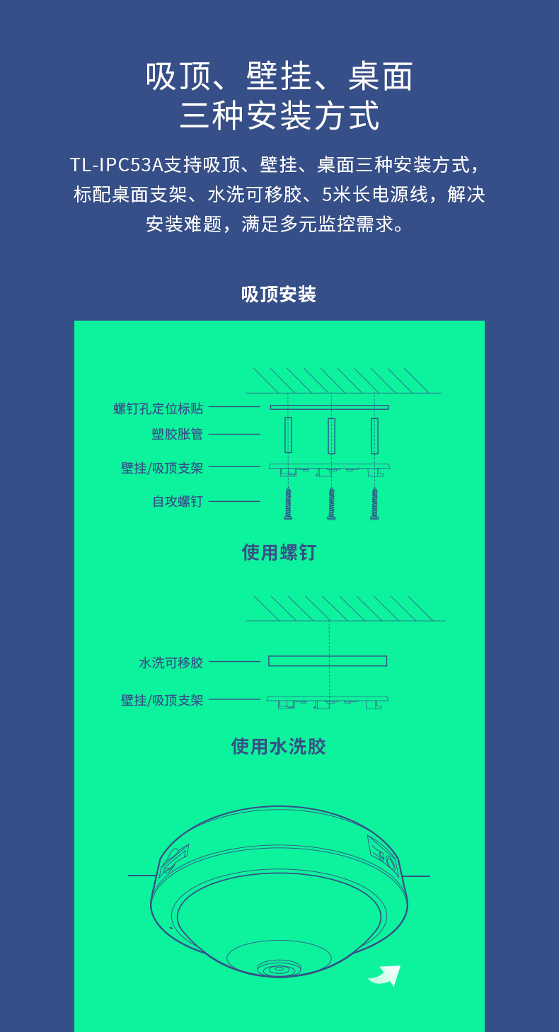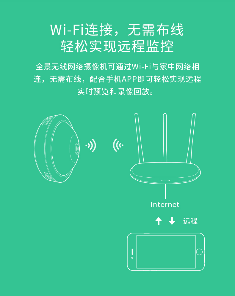 TP-LINK 全景无线网络摄像头wifi智能手机远程监控器夜视高清 TL-IPC53A