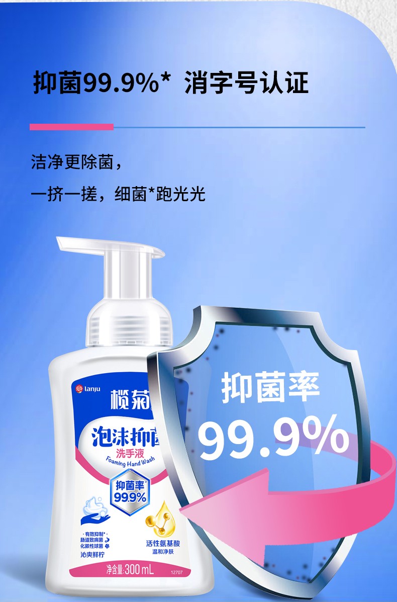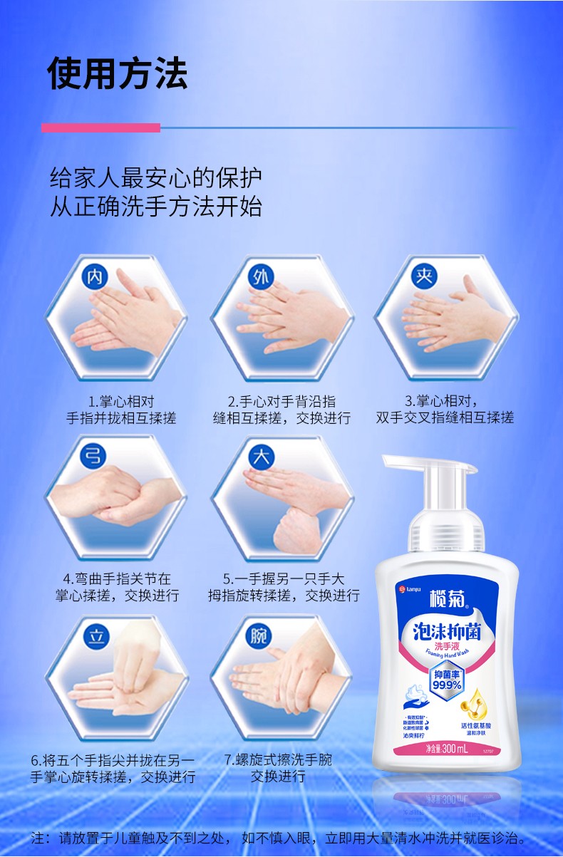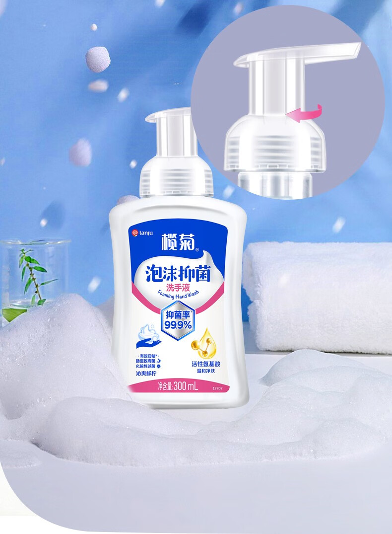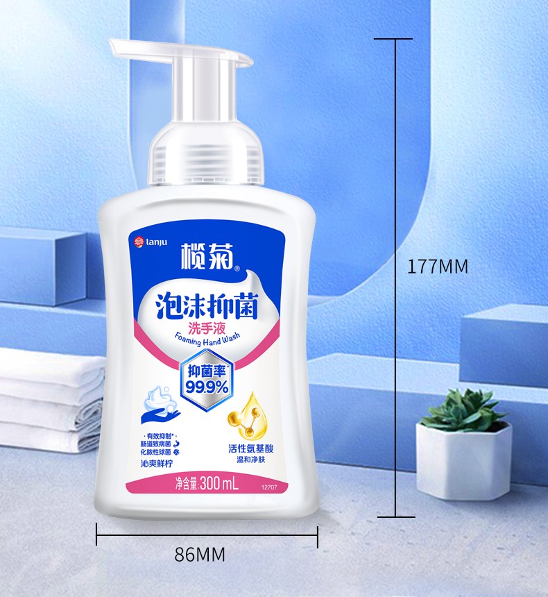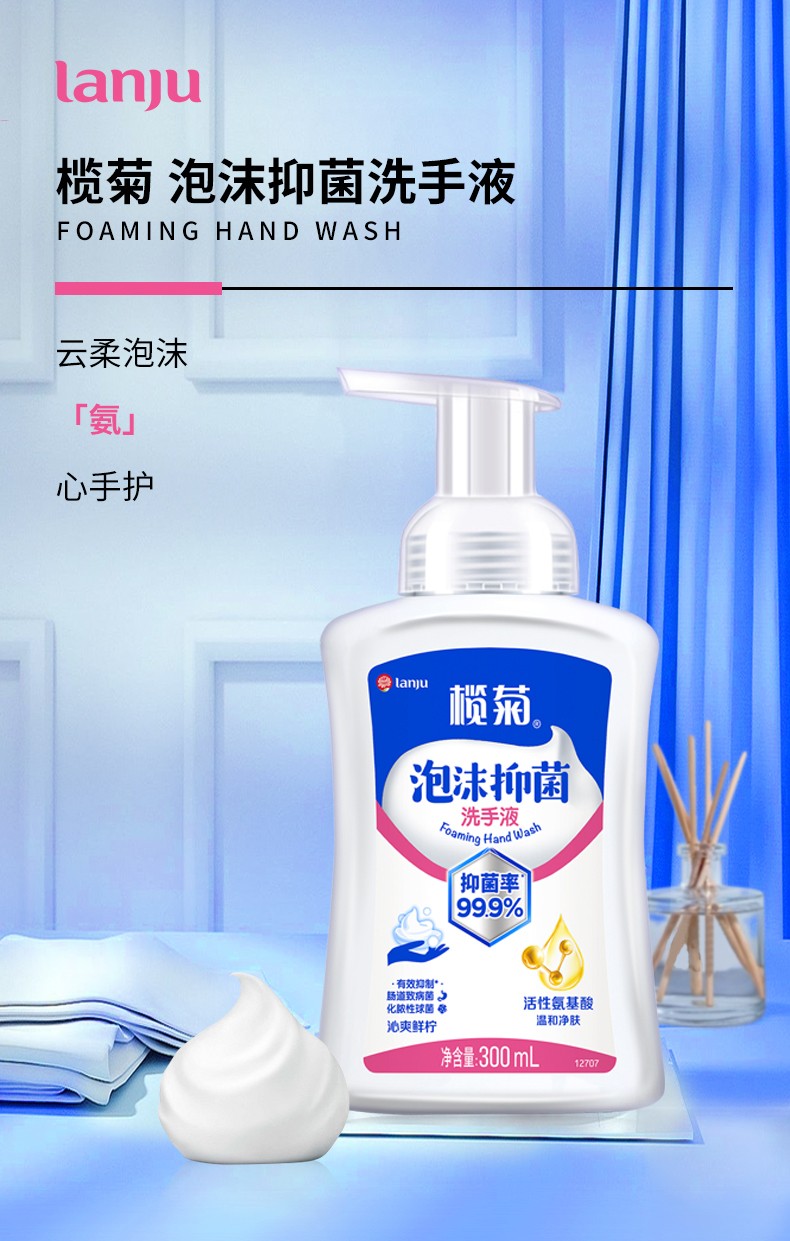 商品名称:榄菊 泡沫抑菌洗手液泡沫易冲洗型杀菌氨基酸温和不伤手除菌99.9% 【普通款】300ml*2 单位:组