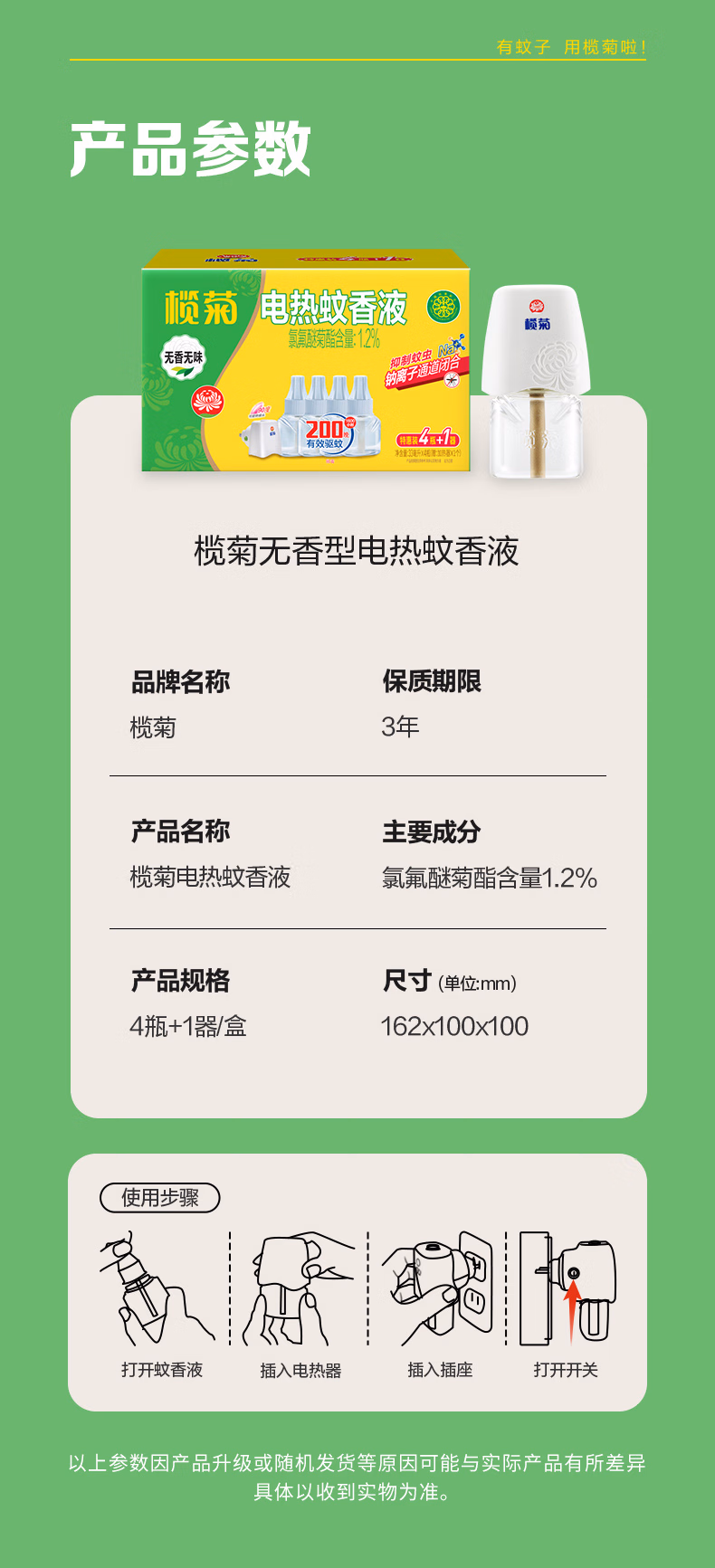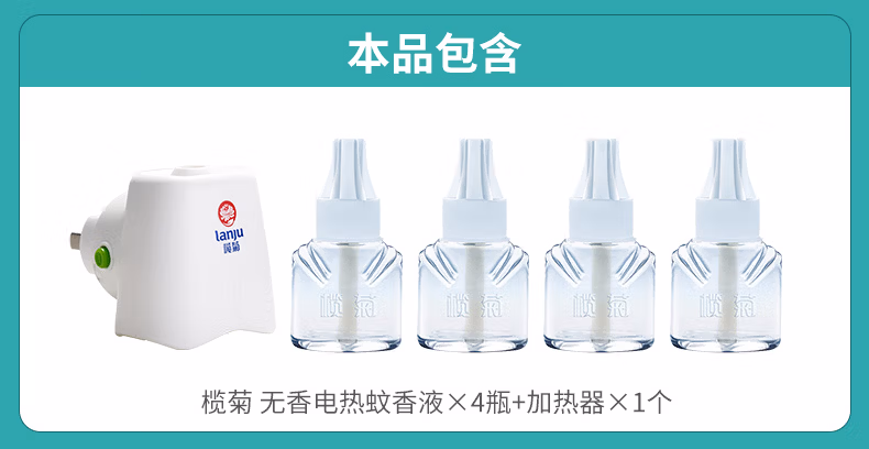 商品名称:榄菊 电蚊香液4瓶200晚+加热器 无香型蚊香液电蚊香防蚊灭蚊驱蚊液 单位:盒