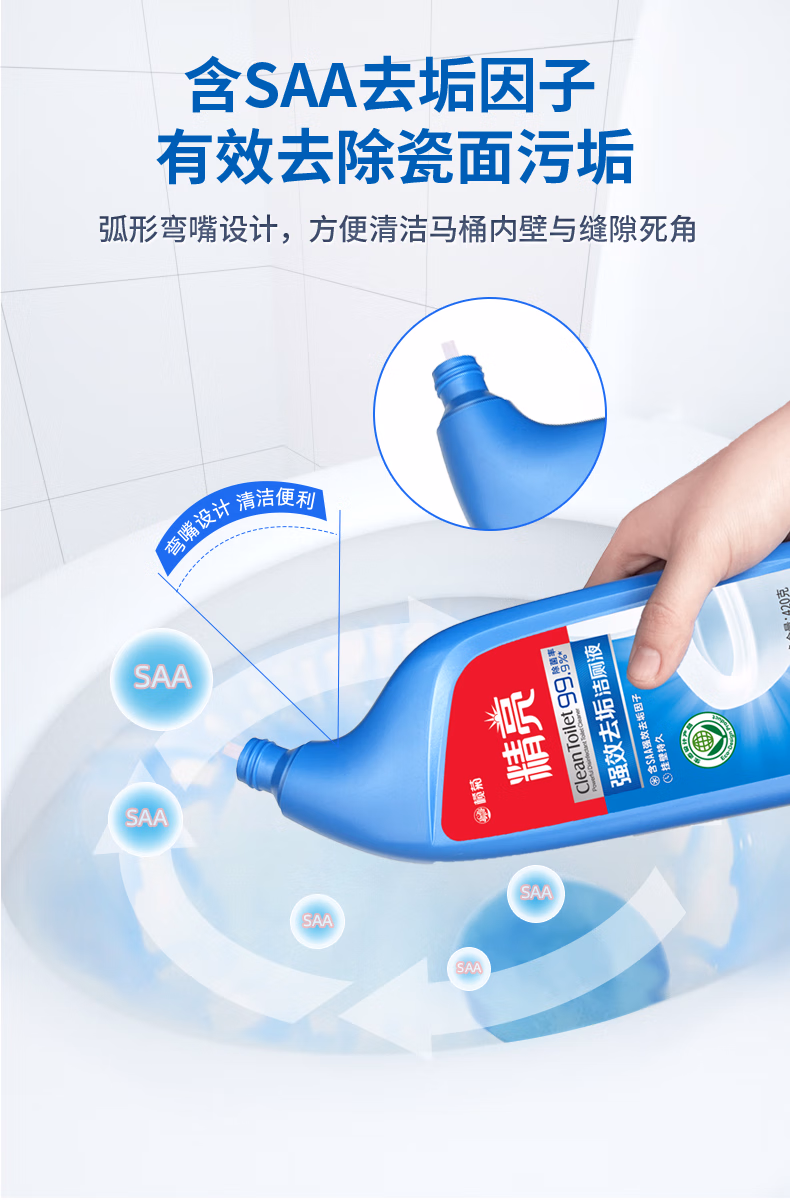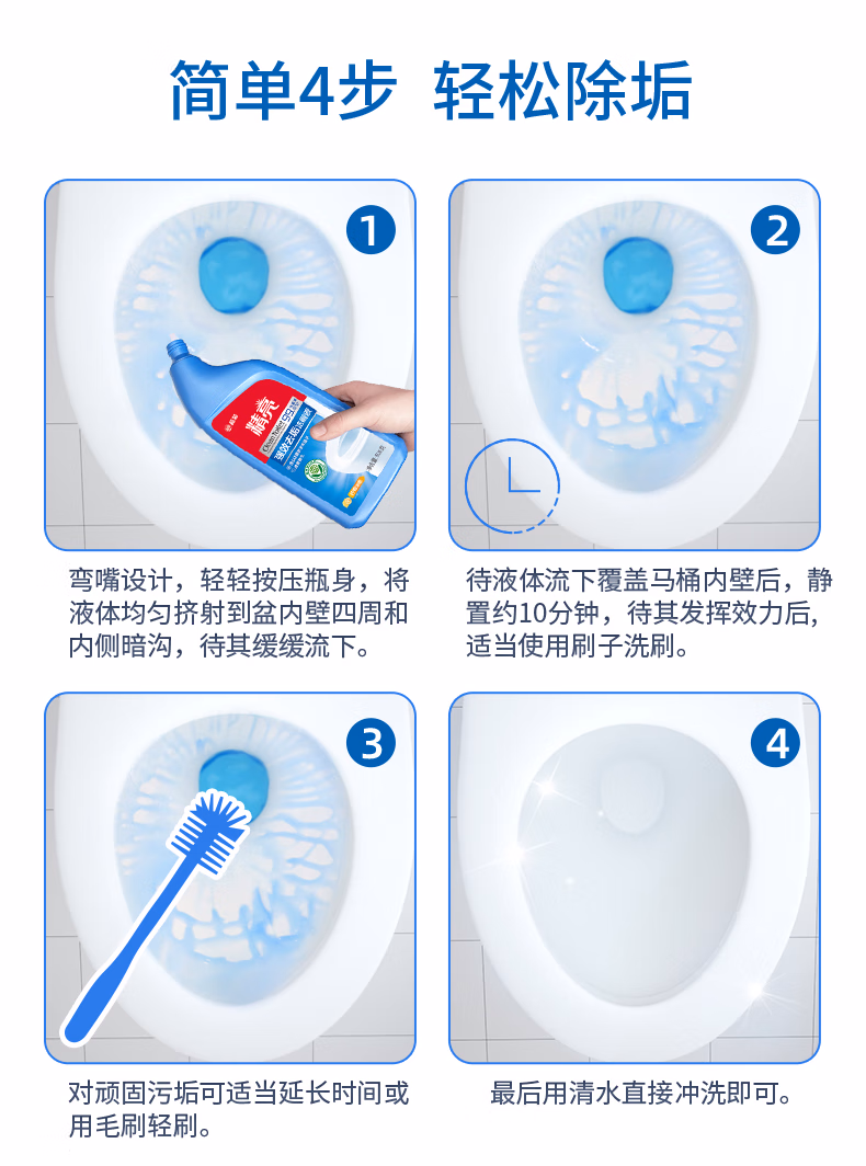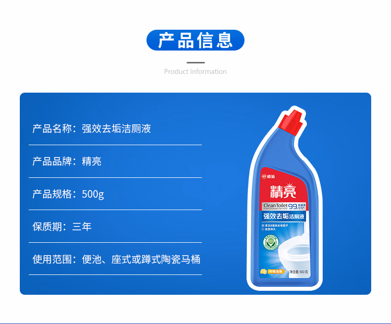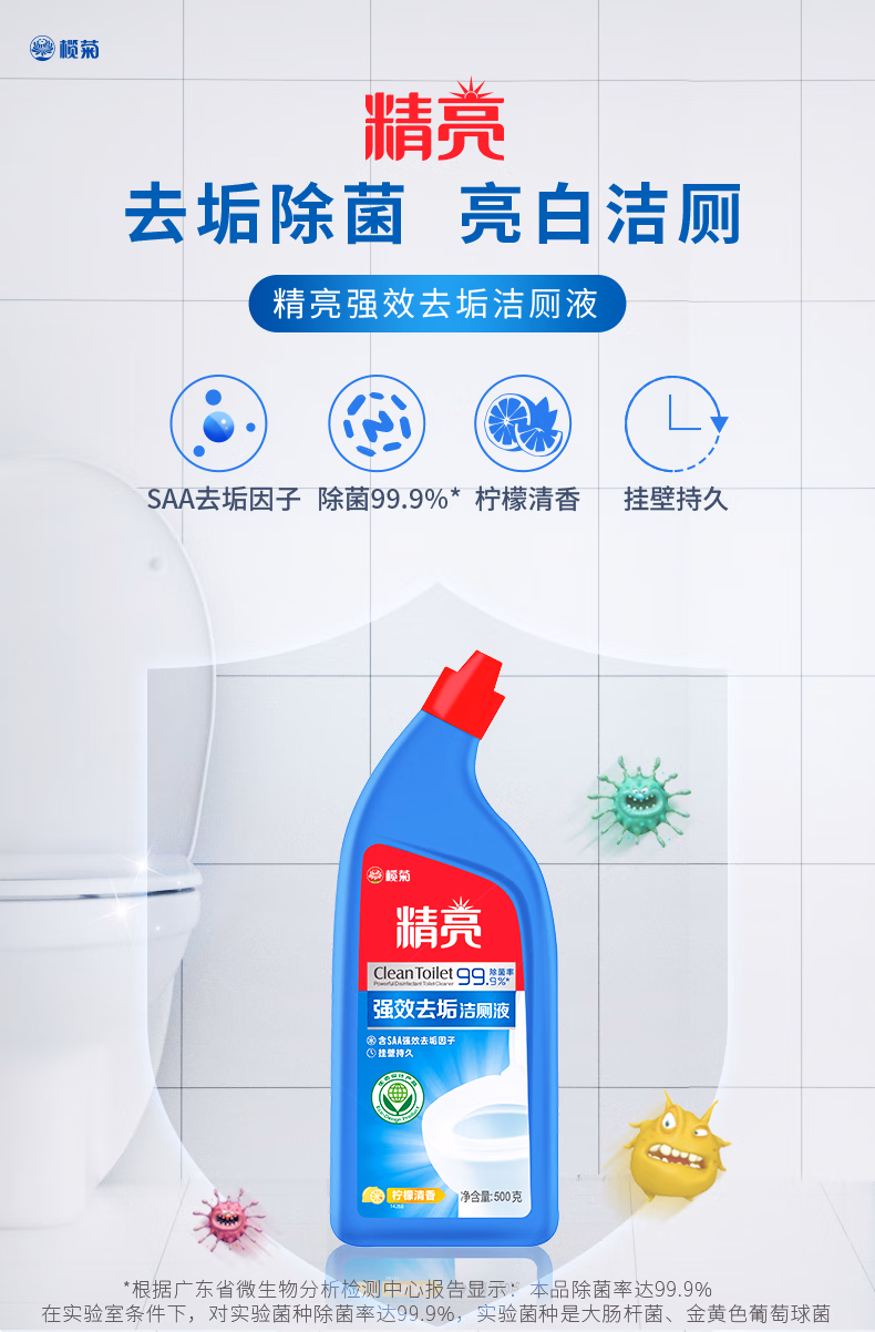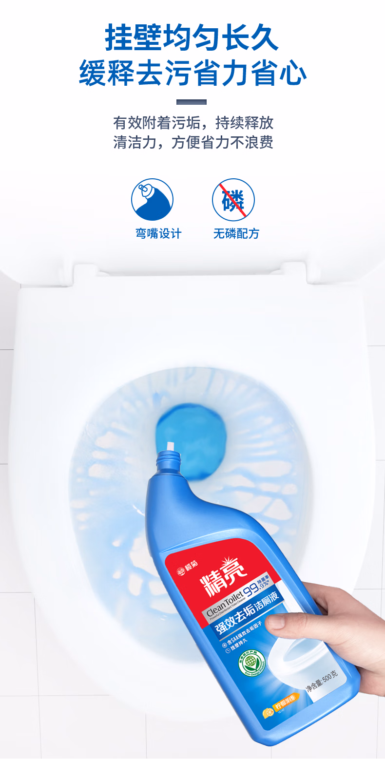 商品名称:榄菊精亮洁厕剂500g*2瓶家用清香除臭味马桶清洁剂卫生间强效去垢洁厕液 单位:套