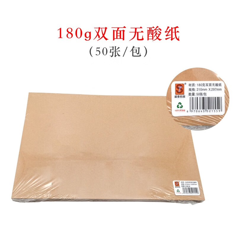 商品名称:盛泰档案(ST) a4牛皮纸封面装订封皮通用空白木浆纸酸纸双面包装纸复古书皮绘画纸打印纸卷宗标书 180克双面无酸纸【50张/包】 单位:包