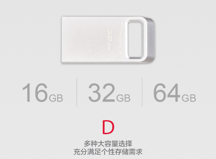 金士顿 64GU盘USB3.1兼容USB3.0可激光定制U盘 DTMC3
