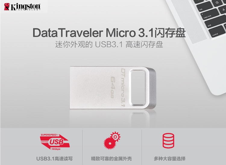 商品名称:金士顿 64GU盘USB3.1兼容USB3.0可激光定制U盘 DTMC3