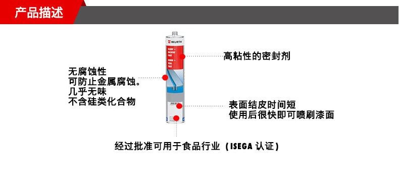 商品名称:伍尔特(WURTH)0890100730 黑色密封胶 310ML 单位:瓶