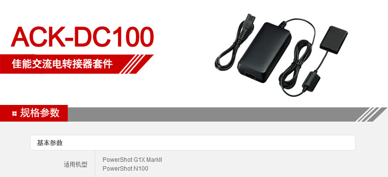 商品名称:佳能/Canon 数码相机 交流电转接器套件 ACK-DC100