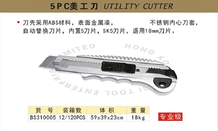 商品名称:波斯工具(BOSI TOOLS)5PC美工刀 BS310005 单位:把