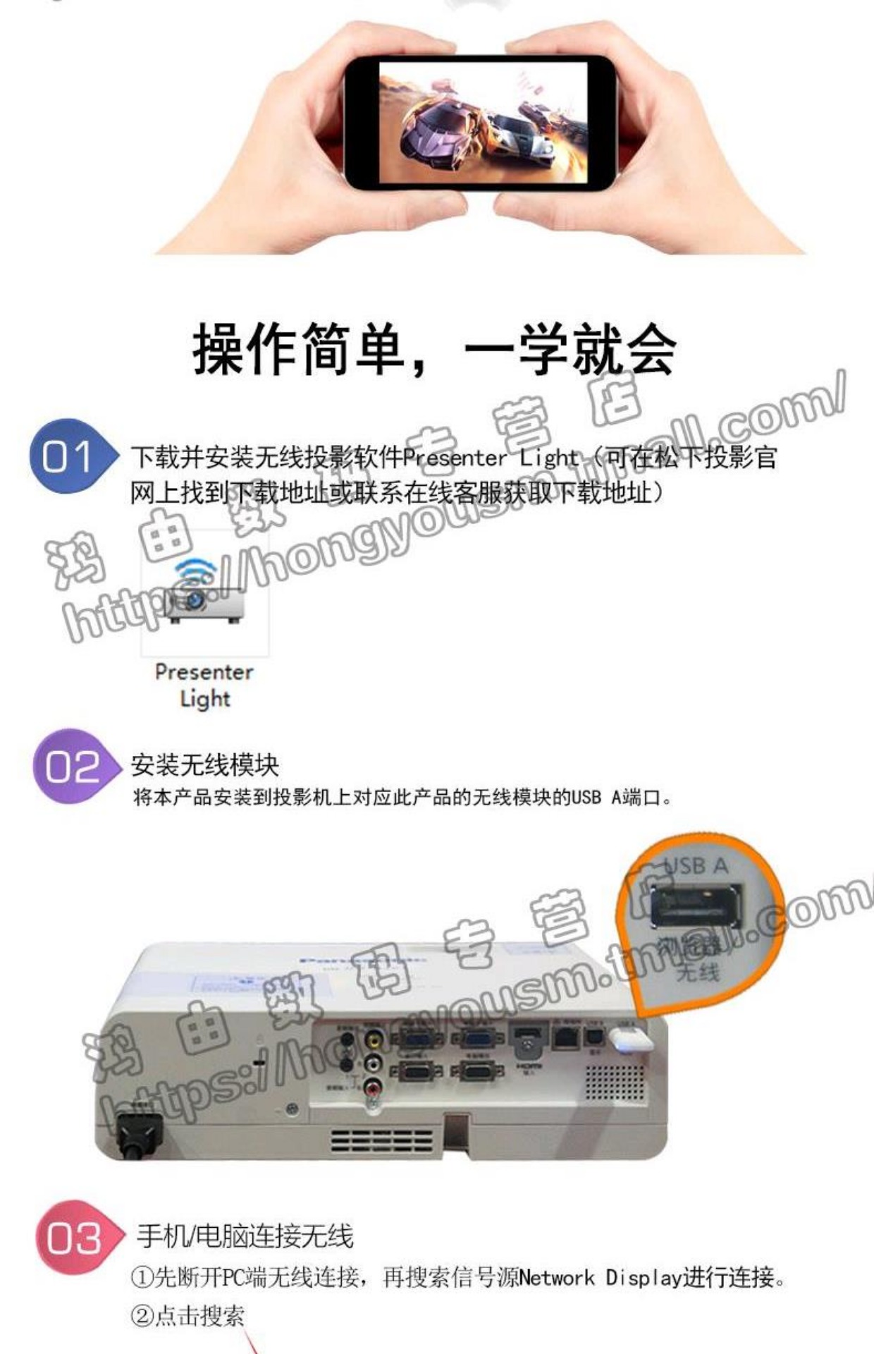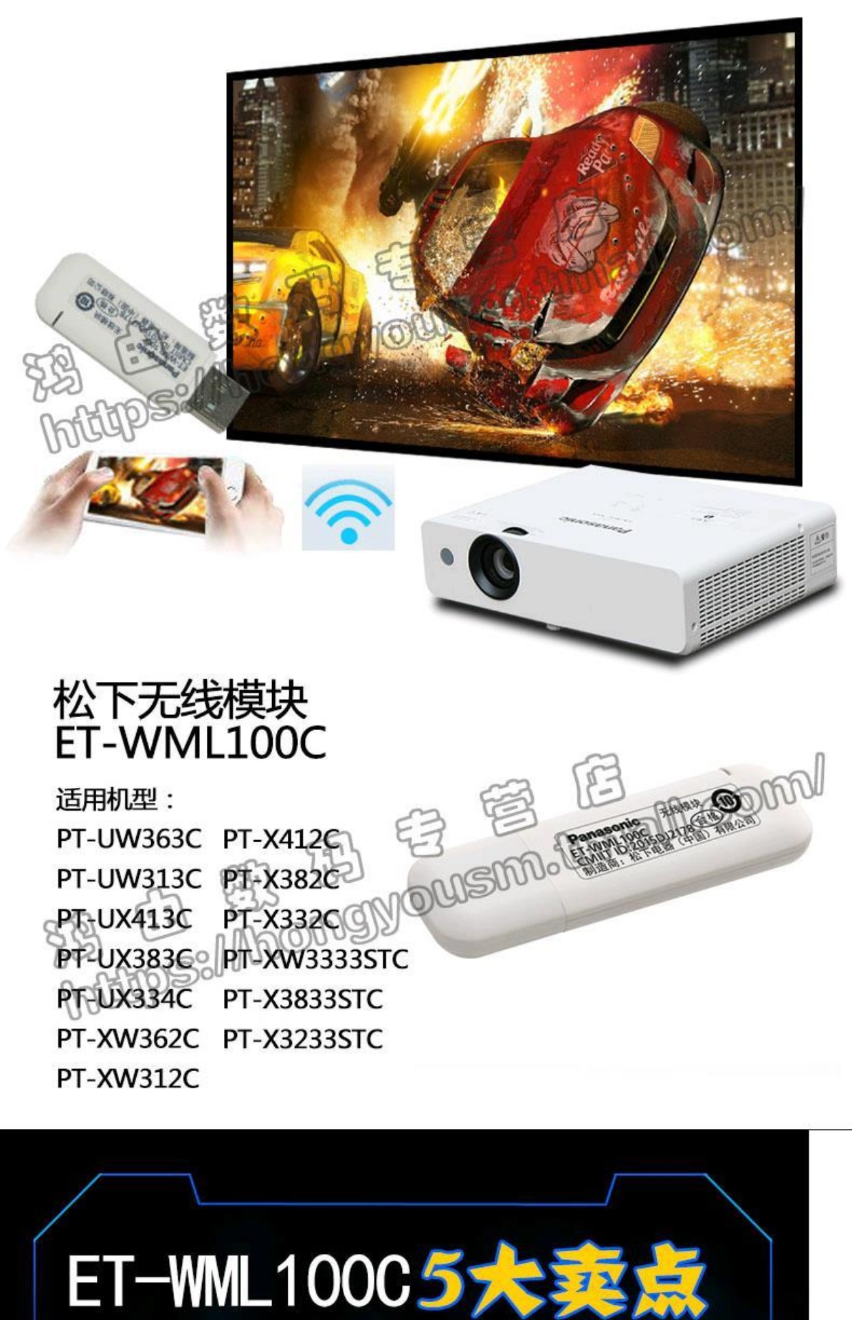 商品名称:松下/Panasonic 投影机无线选配USB模块 无线网卡UW313C/UW363C/UX343C