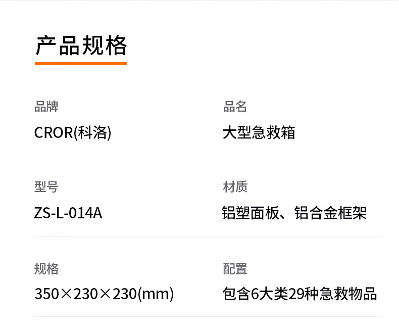 商品名称:科洛(CROR)ZS-L-014B 大型综合急救箱应急套装工厂企业学校医疗箱铝合金医药箱 单位:个