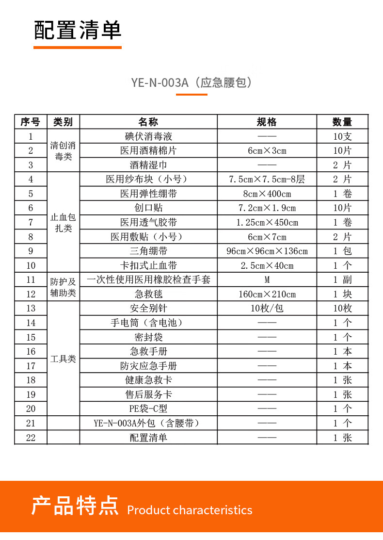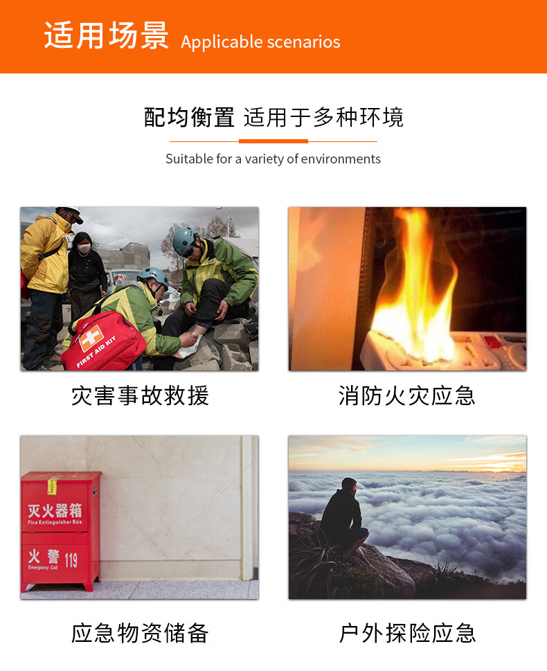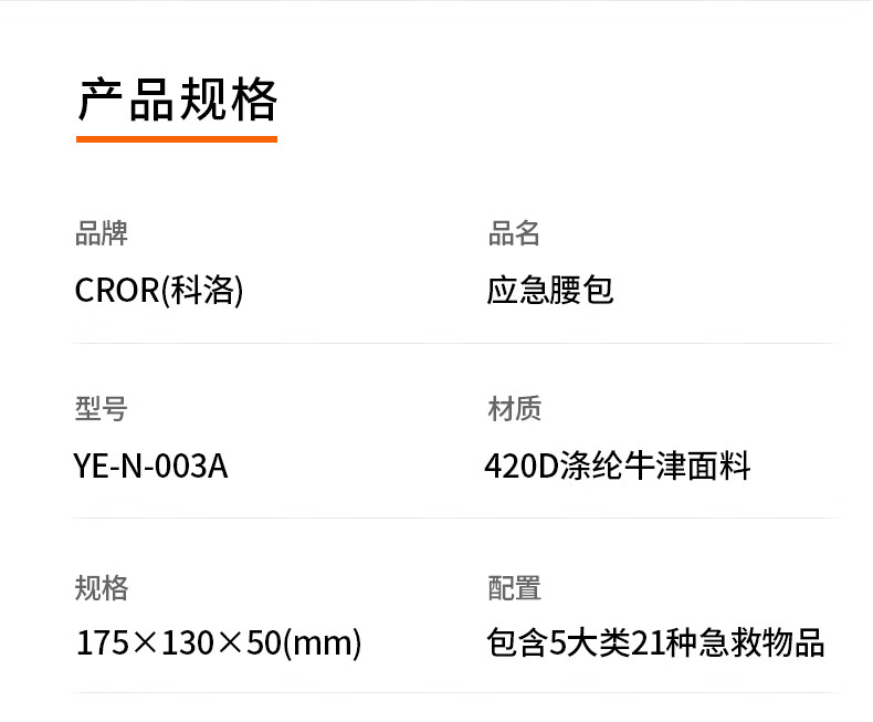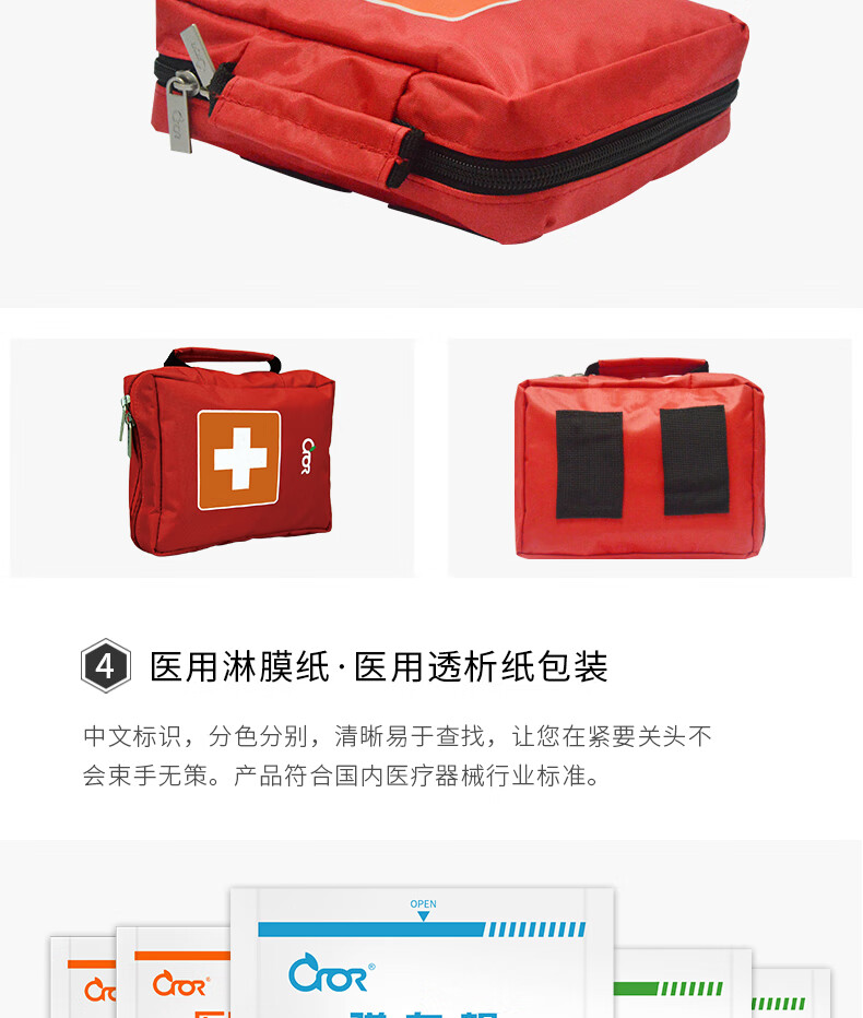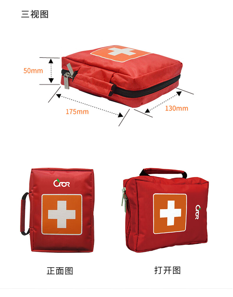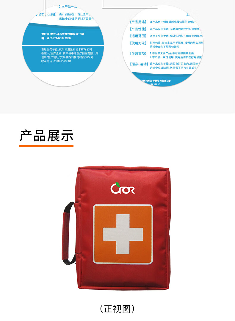 商品名称:科洛(CROR)YE-N-003A 防灾应急标准包 户外旅行便携野外求生车用家庭医疗急救包 可定制 单位:个